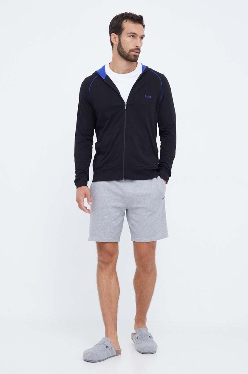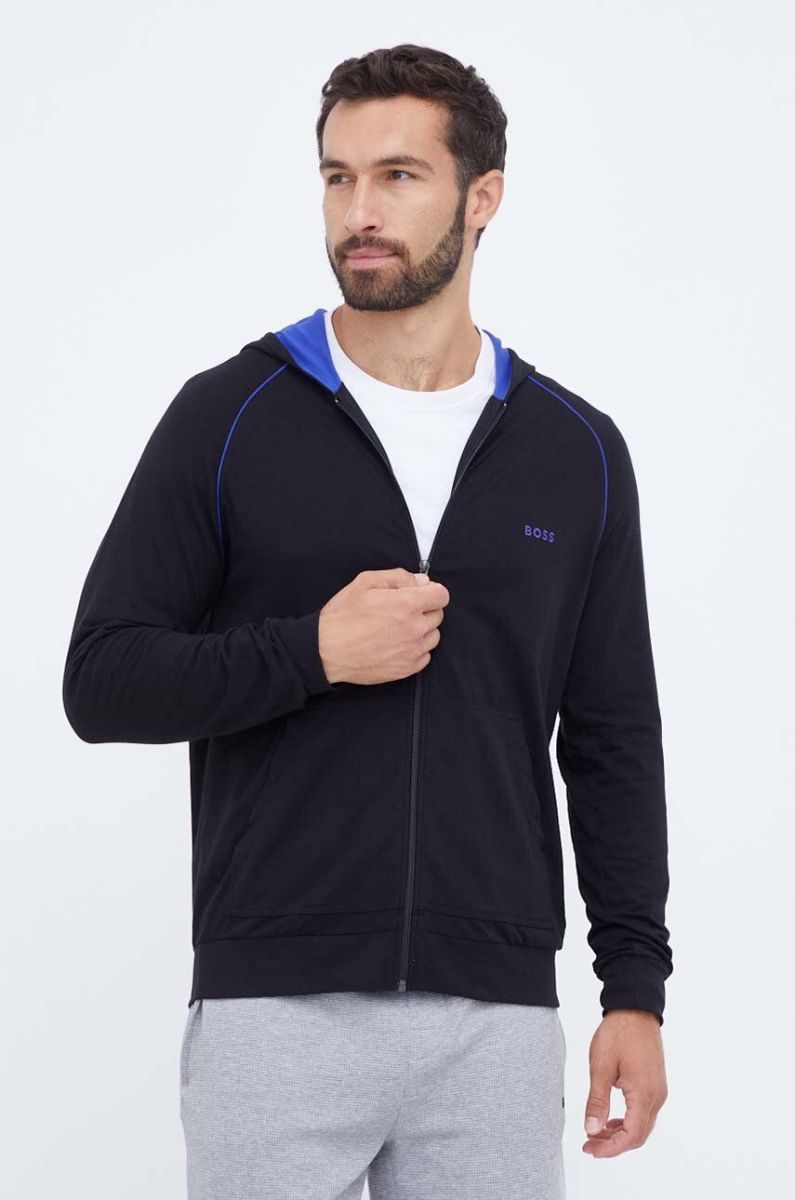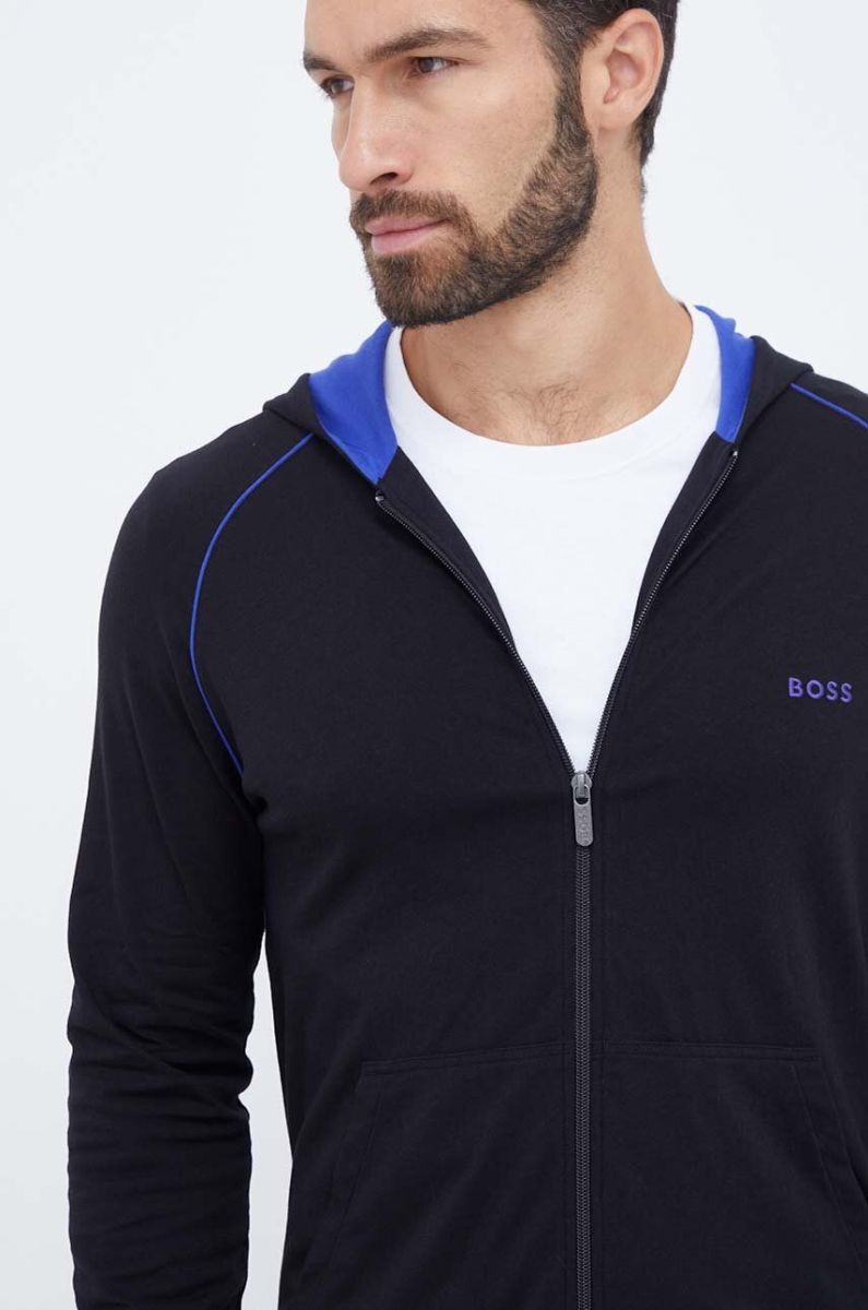 Кофта лаунж BOSS колір чорний з капюшоном однотонна (3354763)