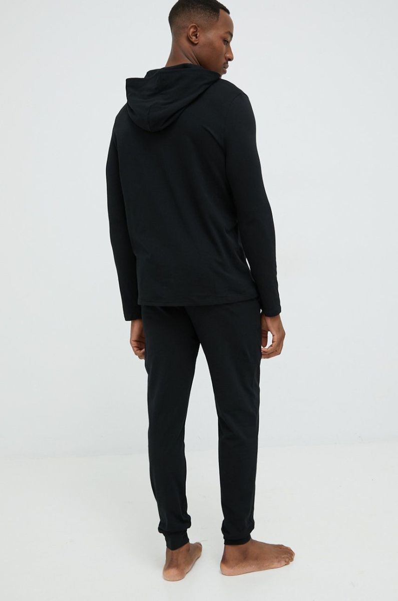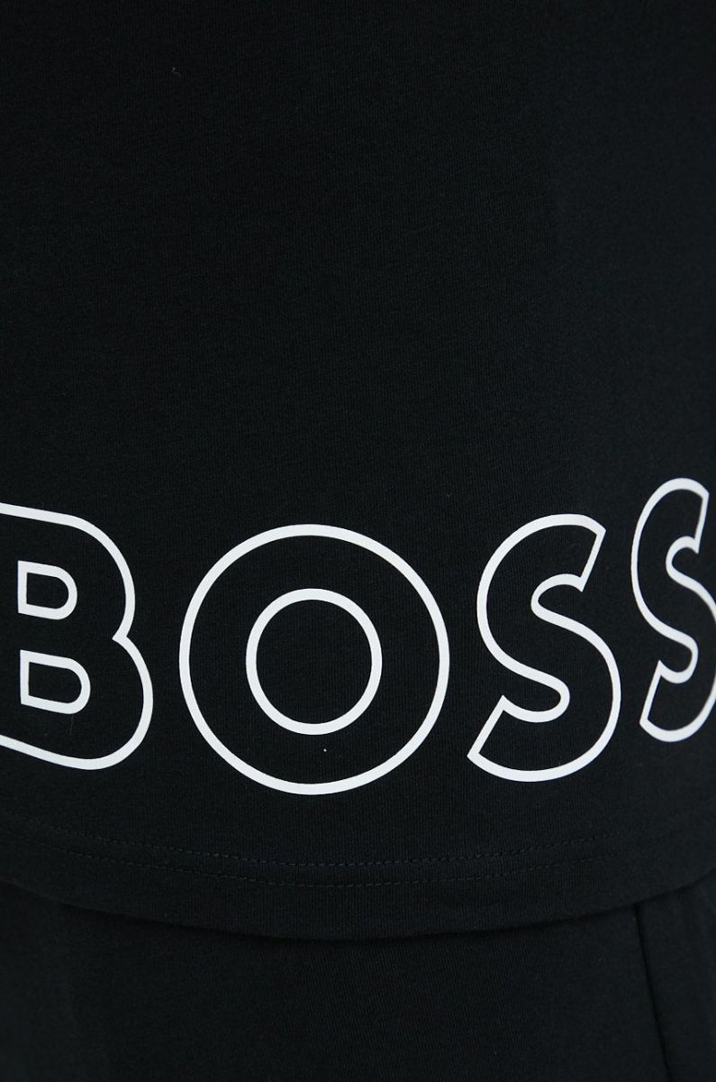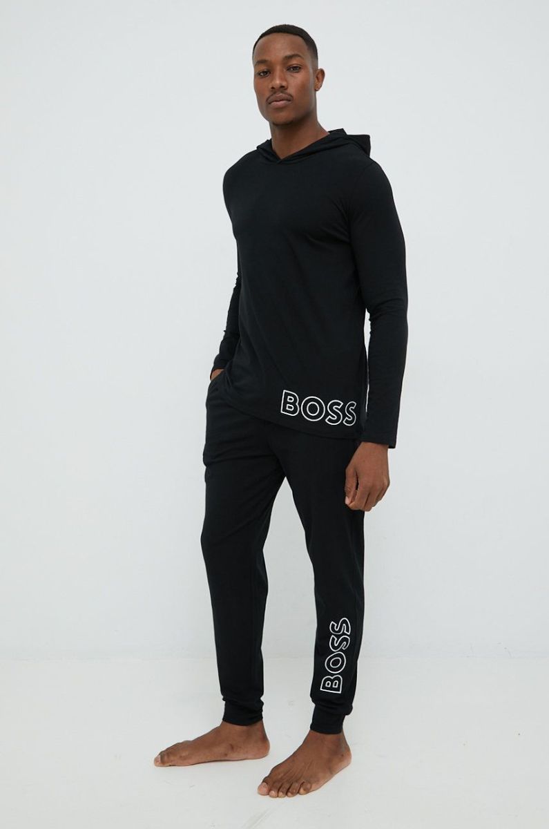 Кофта лаунж BOSS колір чорний з капюшоном з принтом