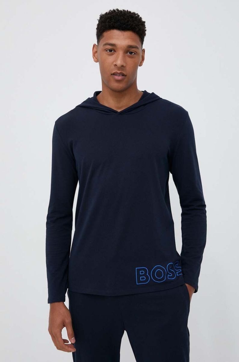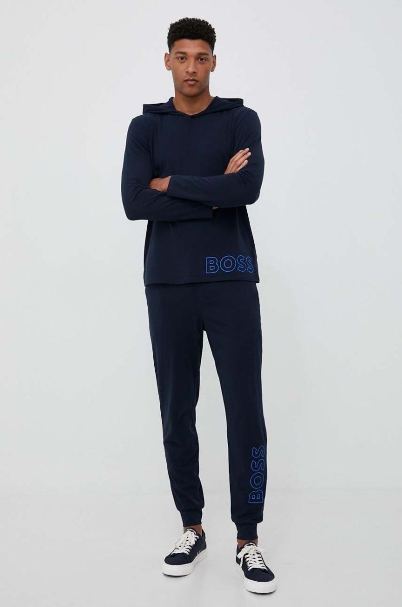 Кофта лаунж BOSS колір синій з капюшоном з принтом (3383041)