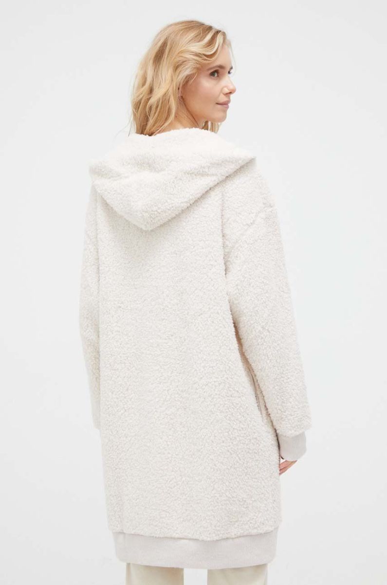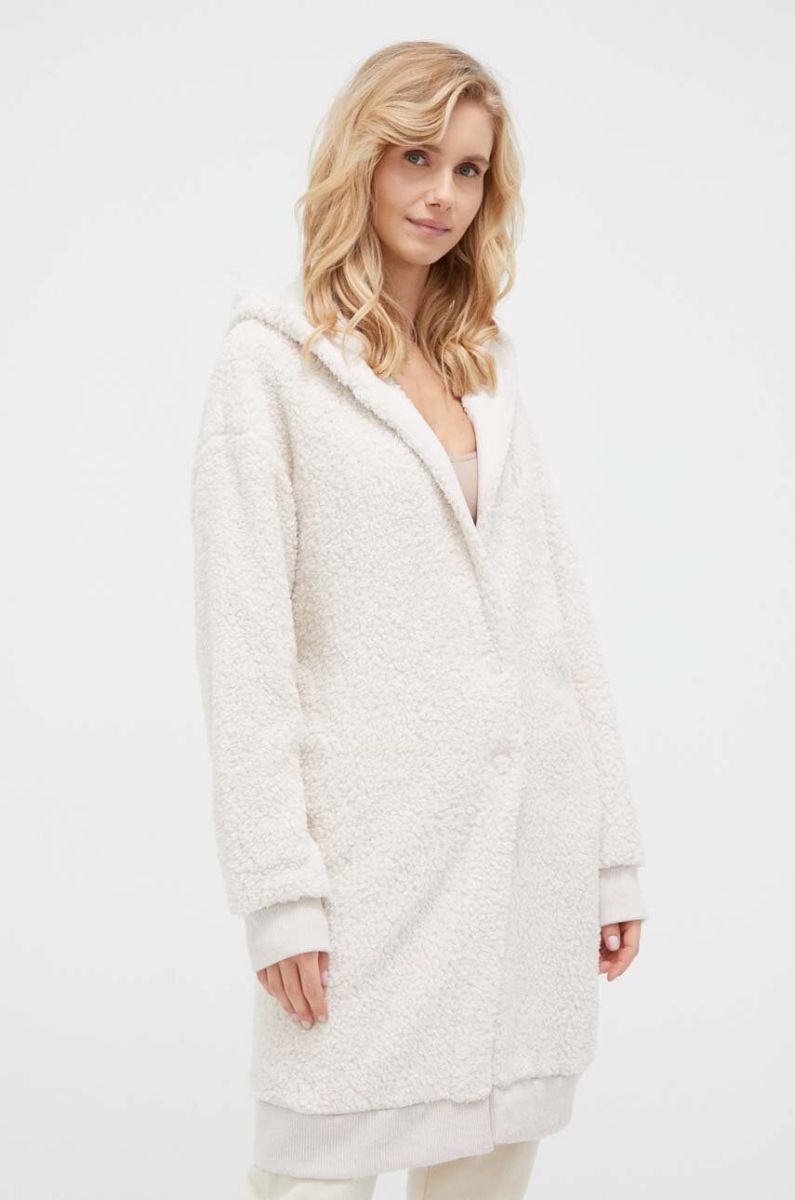 Кофта лаунж Dkny колір бежевий з капюшоном однотонна