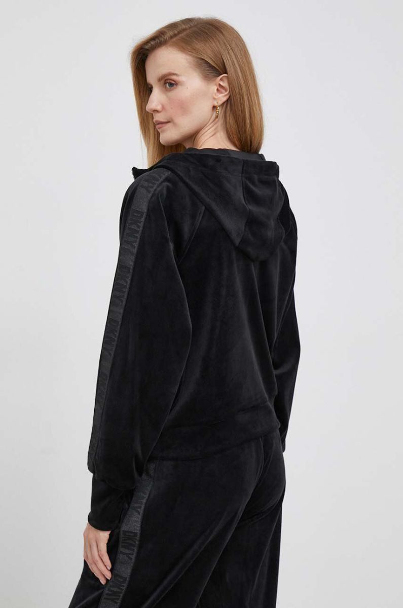 Кофта лаунж Dkny колір чорний з капюшоном з аплікацією