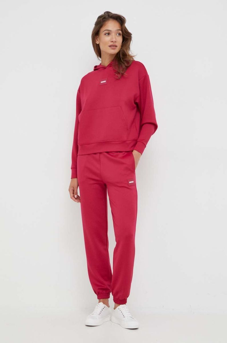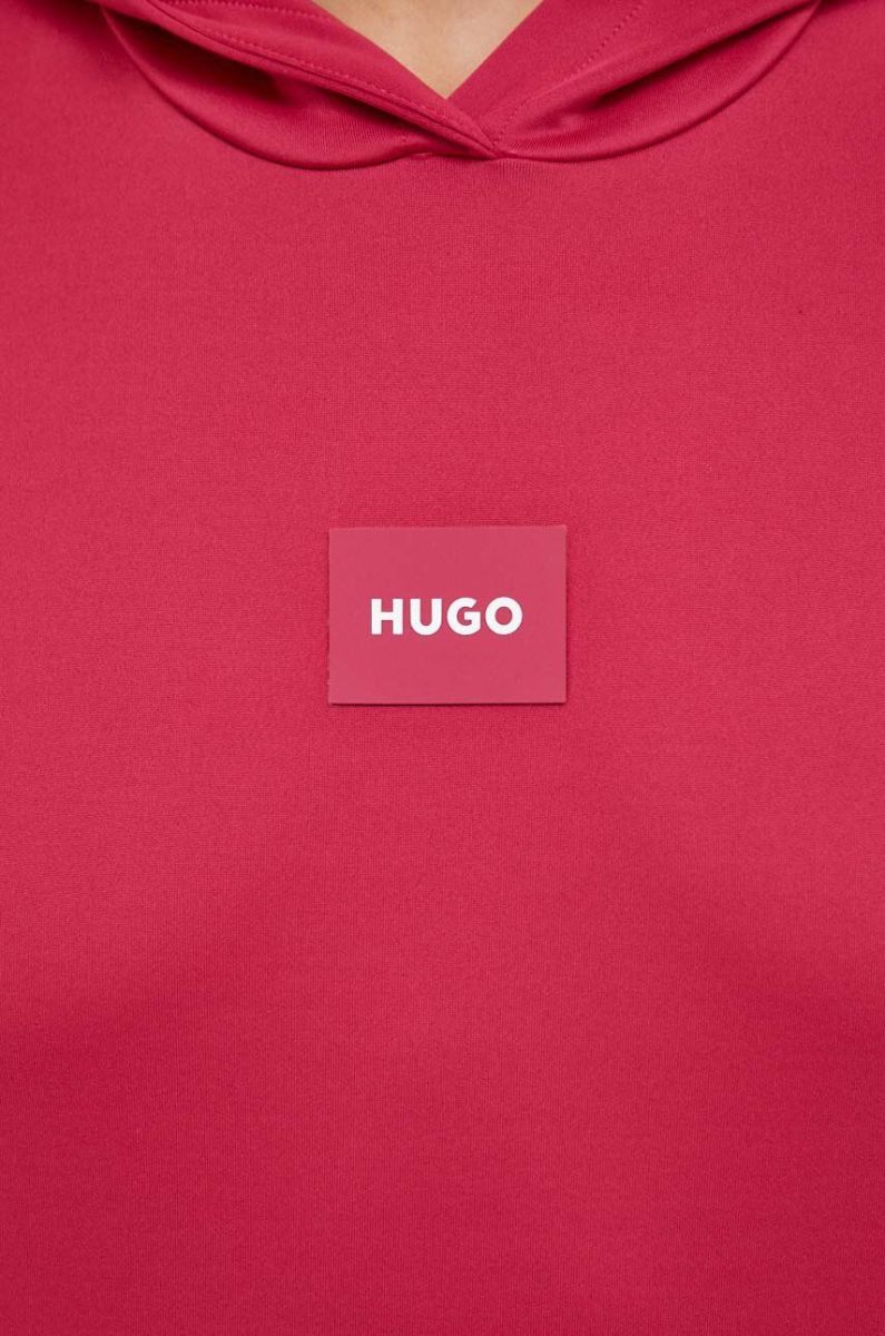Кофта лаунж HUGO колір рожевий з капюшоном однотонна