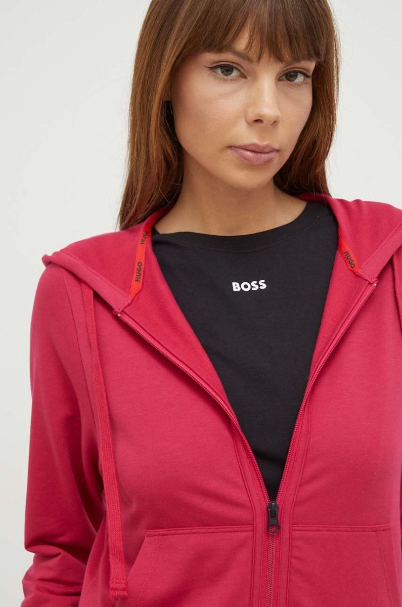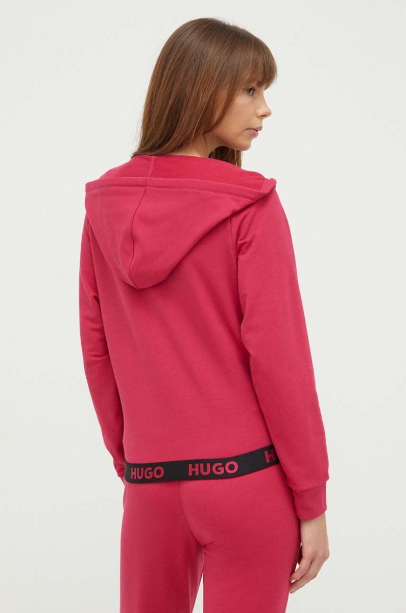 Кофта лаунж HUGO колір рожевий з капюшоном з принтом