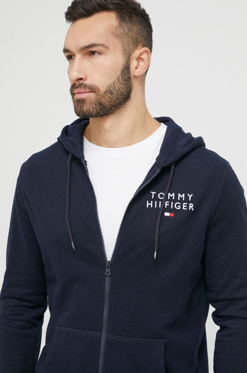 Кофта лаунж Tommy Hilfiger колір синій з капюшоном з принтом