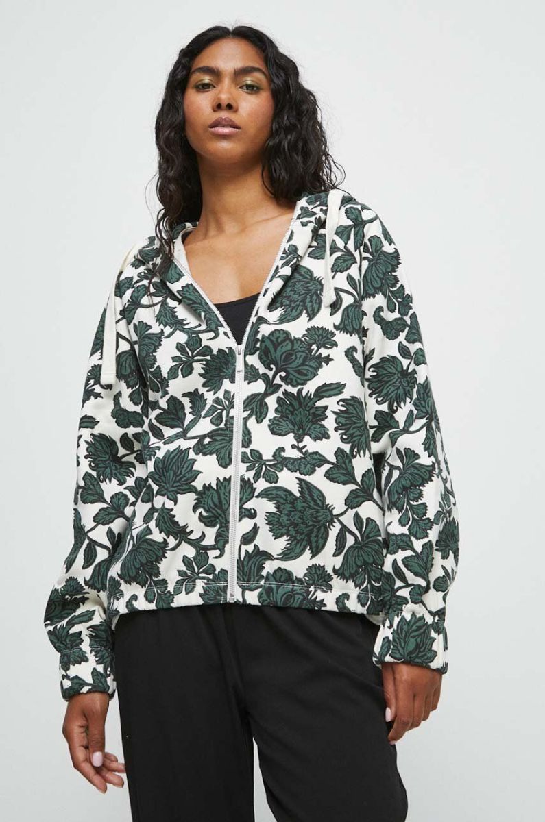 Кофта Medicine жіноча колір бежевий з капюшоном візерунок (3433182)
