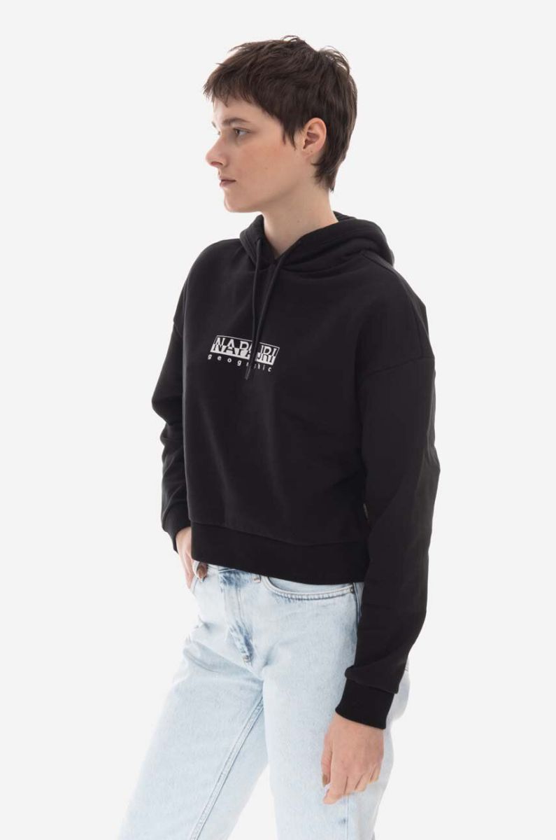Кофта Napapijri жіноча колір чорний з капюшоном візерунок NP0A4GXU0411-041
