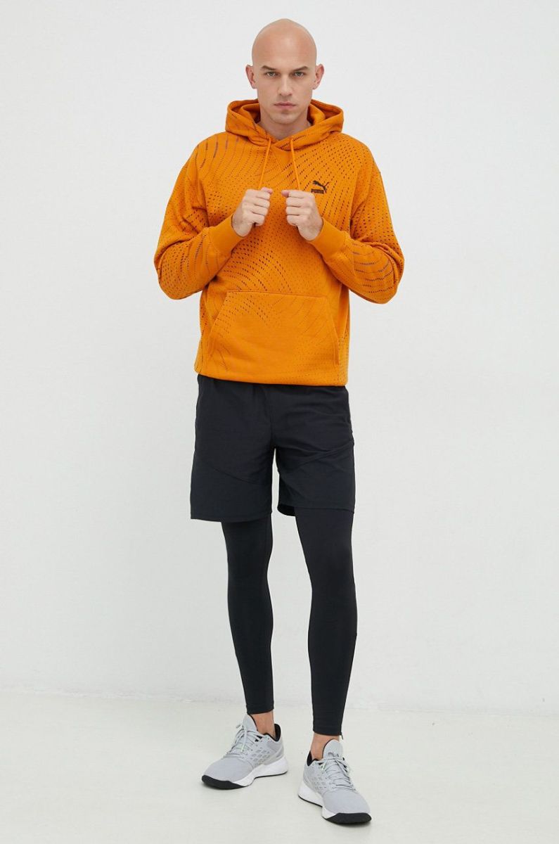 Кофта Puma чоловіча колір помаранчевий з капюшоном візерунок