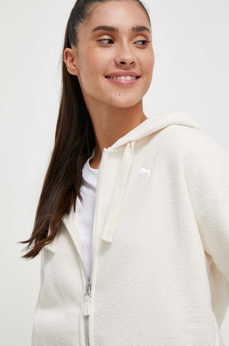 Кофта Puma жіноча колір бежевий з капюшоном однотонна (3632554)