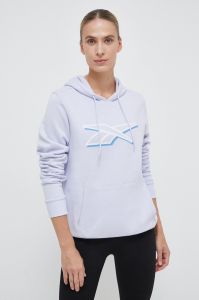 Кофта Reebok жіноча колір фіолетовий з капюшоном з принтом (3553649)