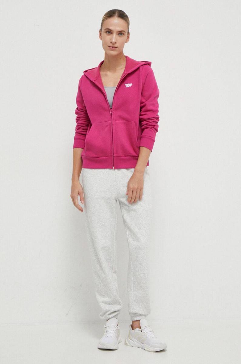 Кофта Reebok жіноча колір рожевий з капюшоном однотонна (3553609)