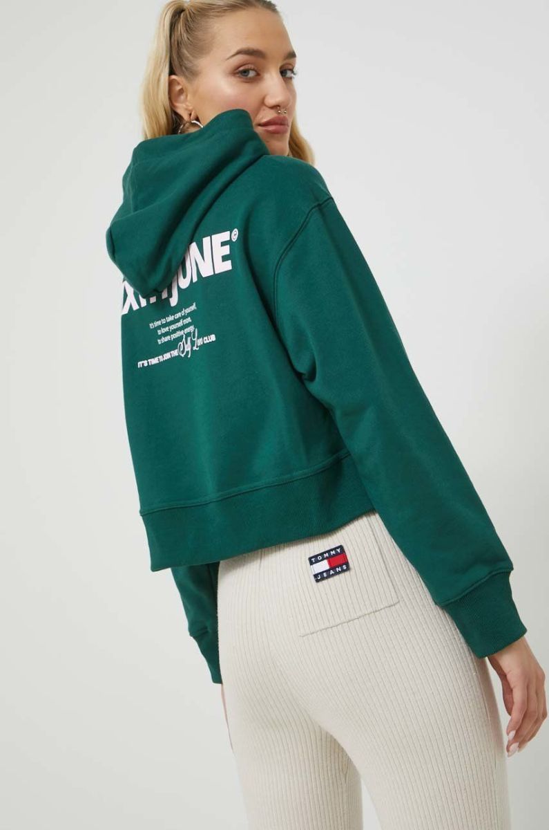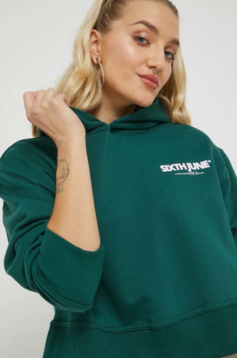 Кофта Sixth June жіноча колір зелений з капюшоном однотонна