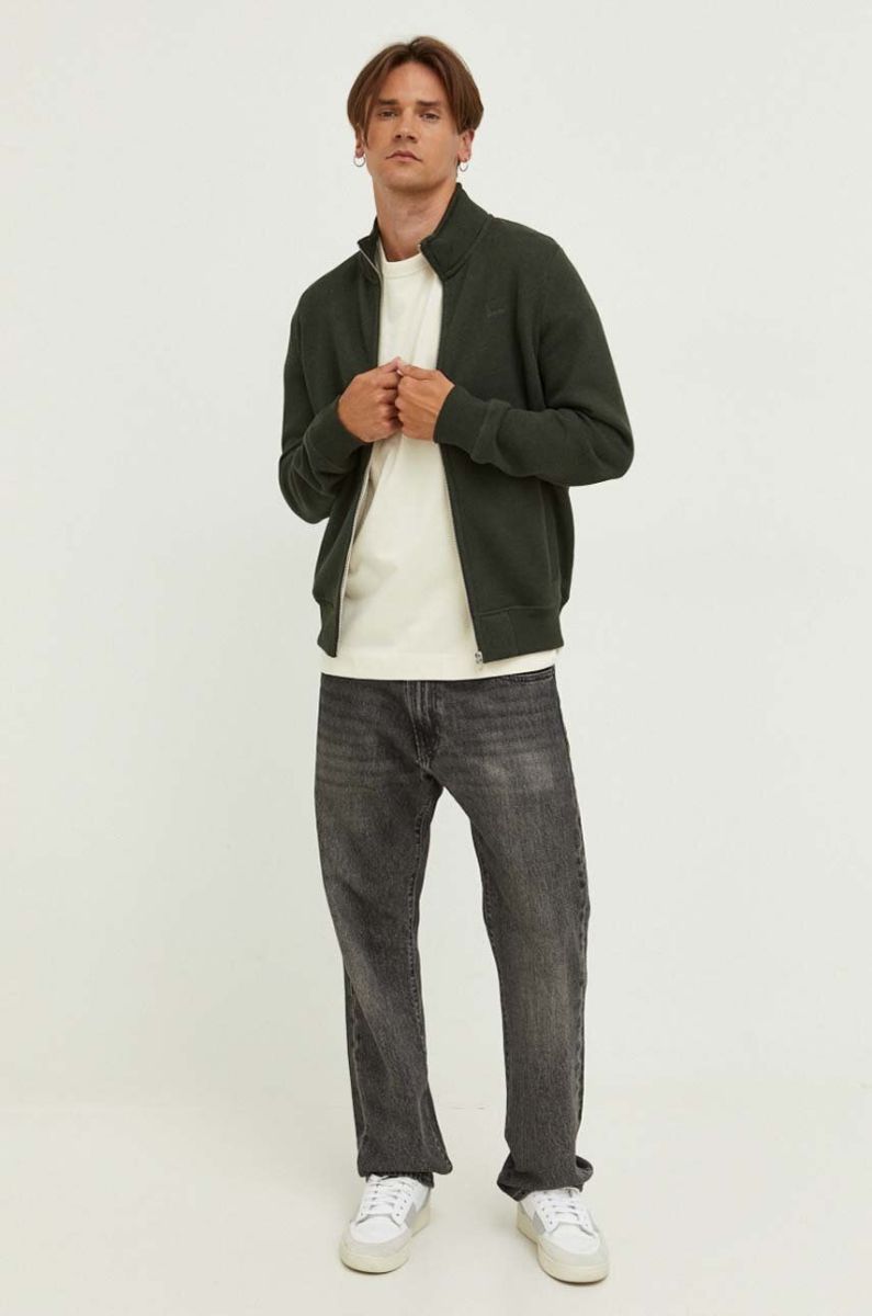 Кофта Superdry чоловіча колір зелений однотонна (3465992)