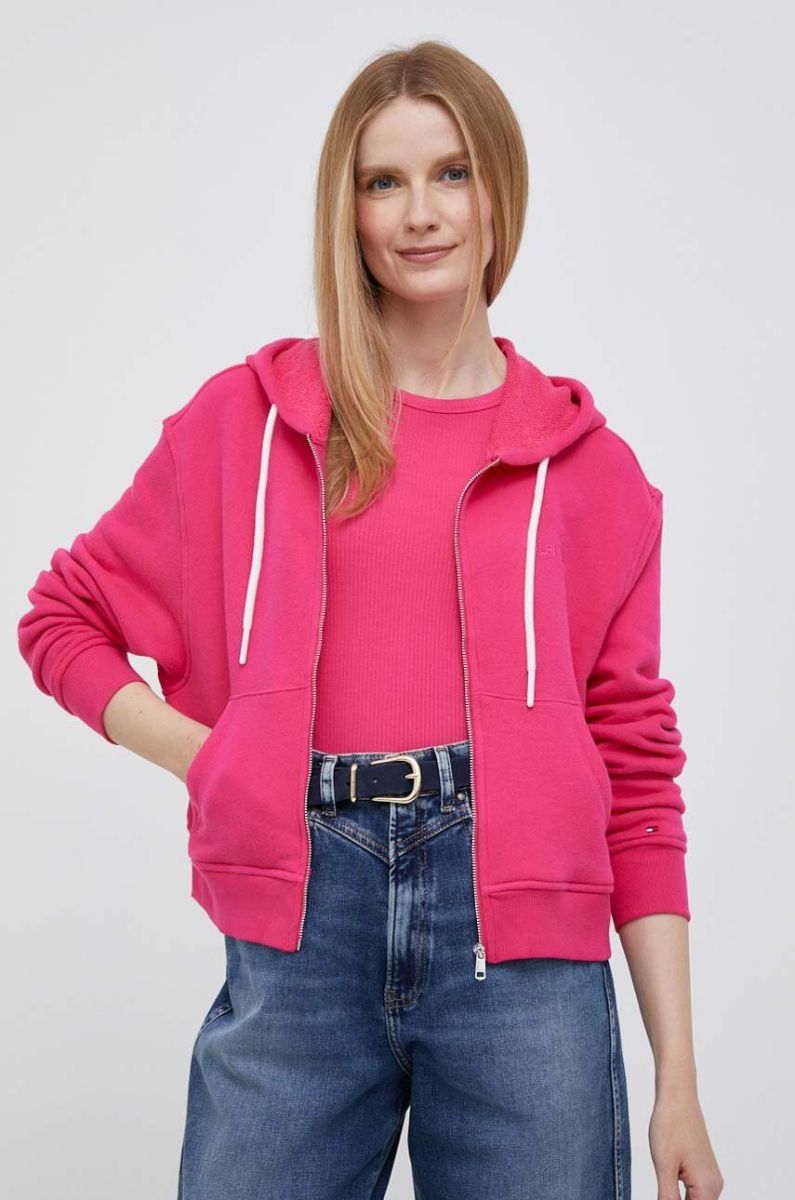 Кофта Tommy Hilfiger жіноча колір рожевий з капюшоном однотонна (3287941)