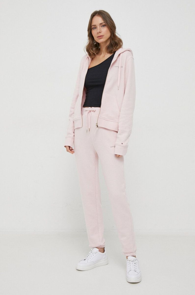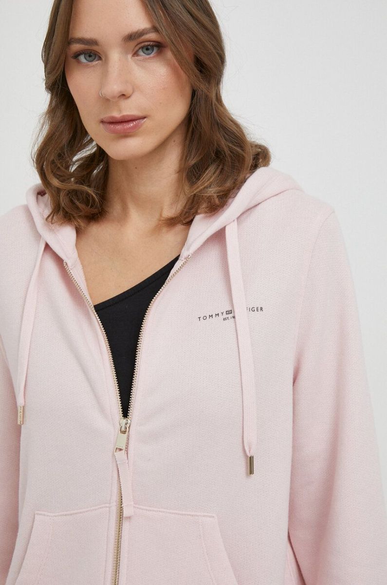 Кофта Tommy Hilfiger жіноча колір рожевий з капюшоном однотонна (3686895)