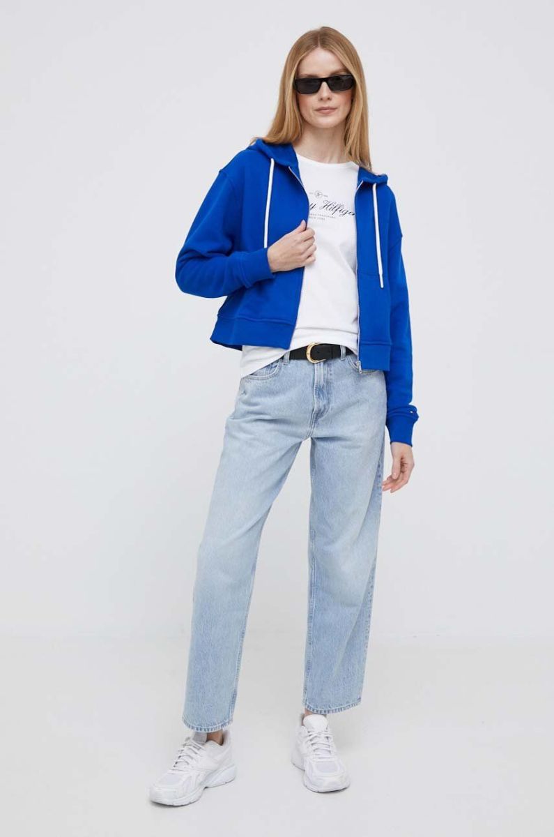 Кофта Tommy Hilfiger жіноча колір синій з капюшоном однотонна (3287937)