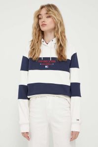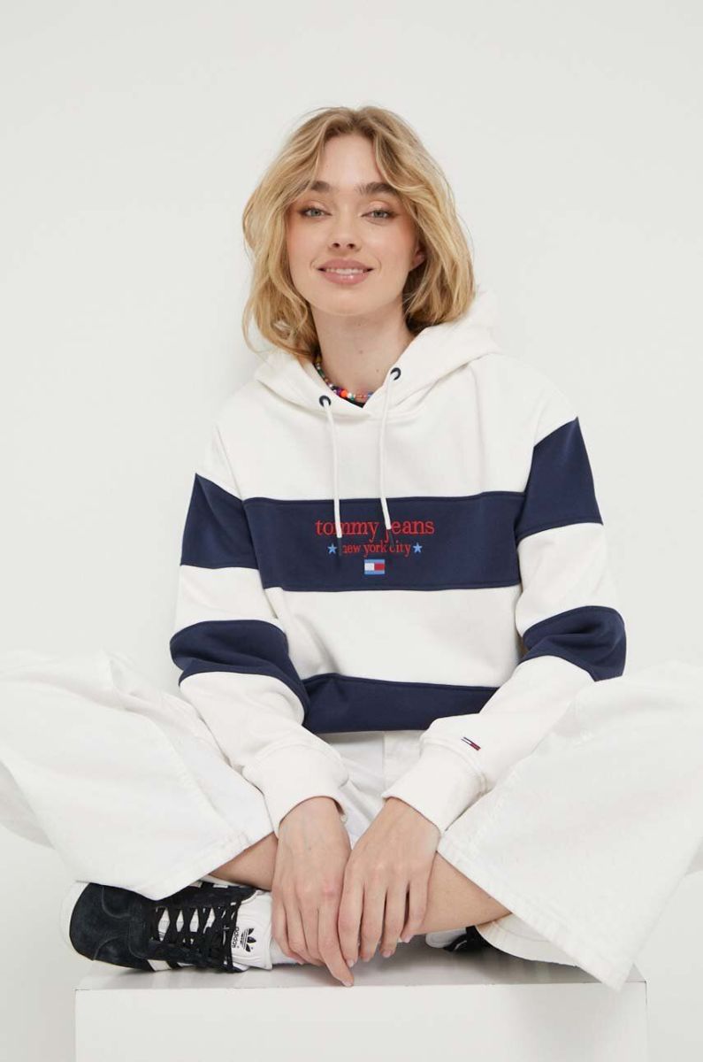 Кофта Tommy Jeans жіноча колір білий з капюшоном візерунок