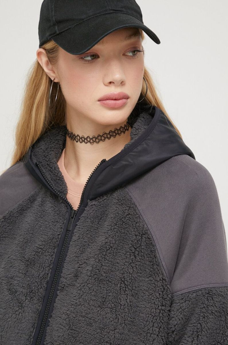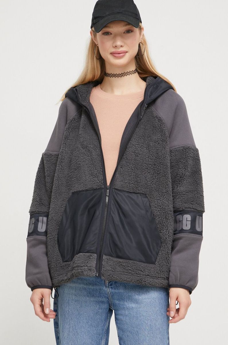 Кофта UGG жіноча колір чорний з капюшоном з принтом