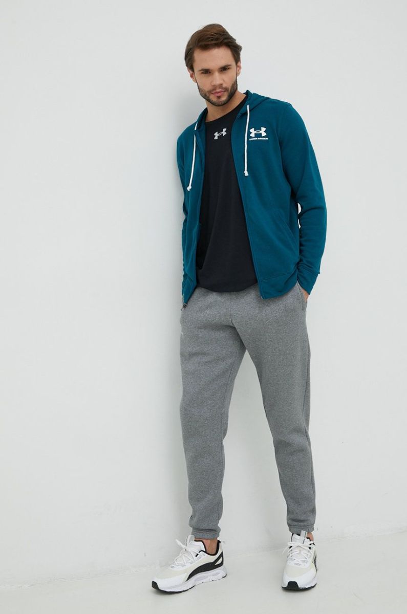 Кофта Under Armour чоловіча колір зелений з капюшоном однотонна (2737882)