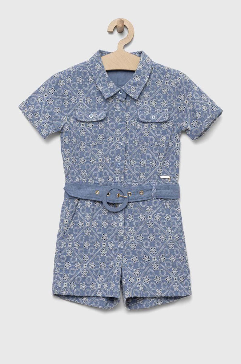 Дитячий комбінезон з колекції Guess виконаний із узорної тканини. Модель з надзвичайно комфортного і дихаючого матеріалу, що ідеально підходить для теплої пори року.