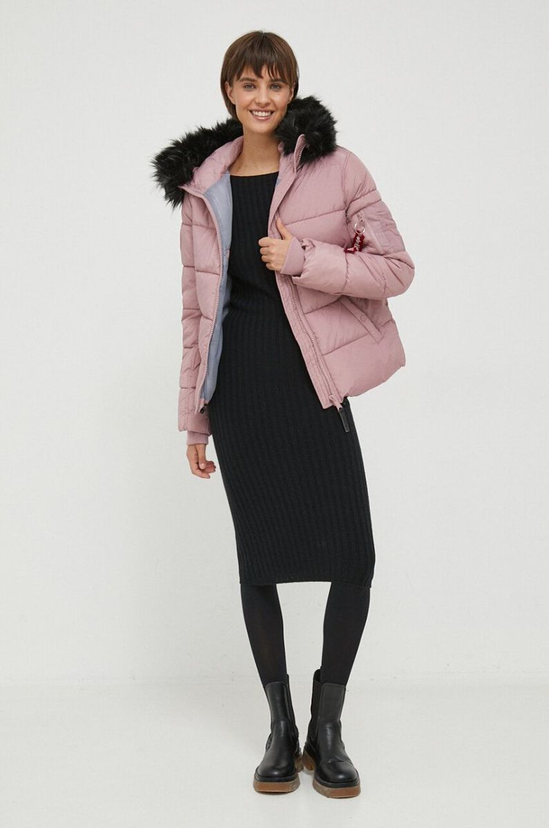 Куртка Alpha Industries Hooded Puffer Wmn жіноча колір рожевий зимова