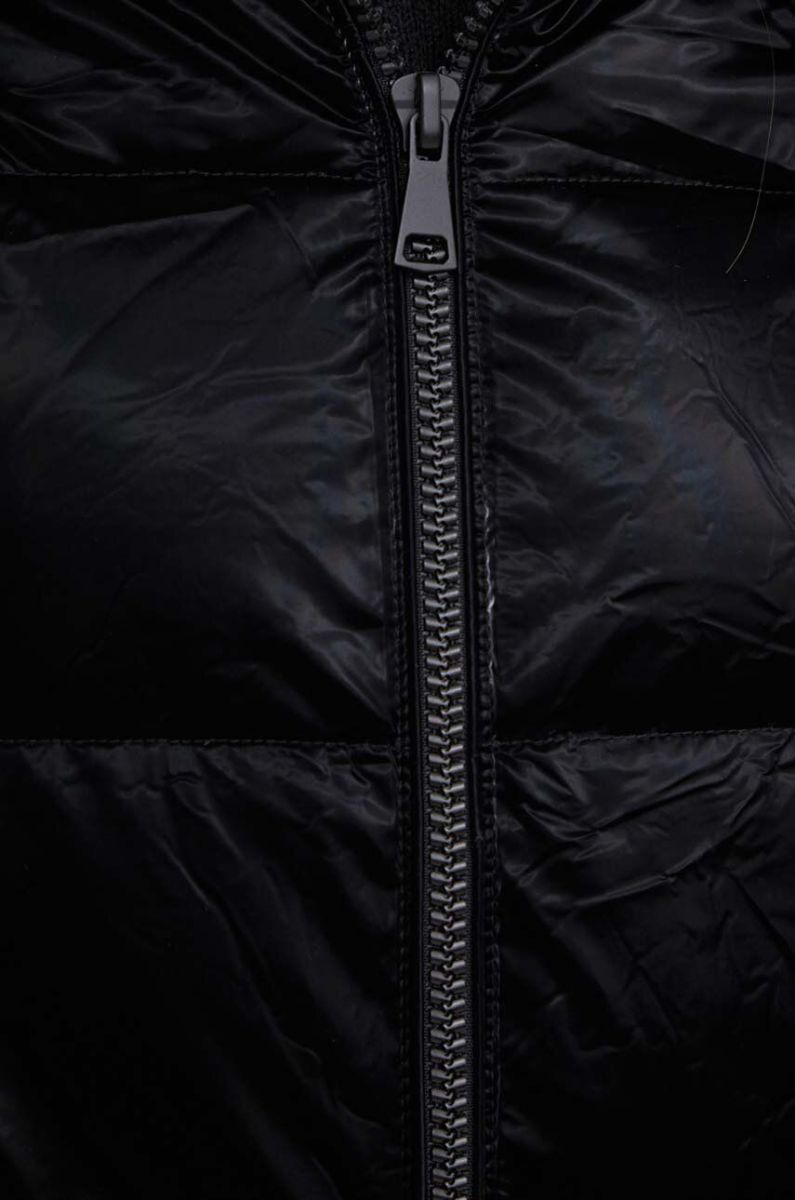 - Завищений комір і незнімний капюшон забезпечують додатковий захист від холоду.