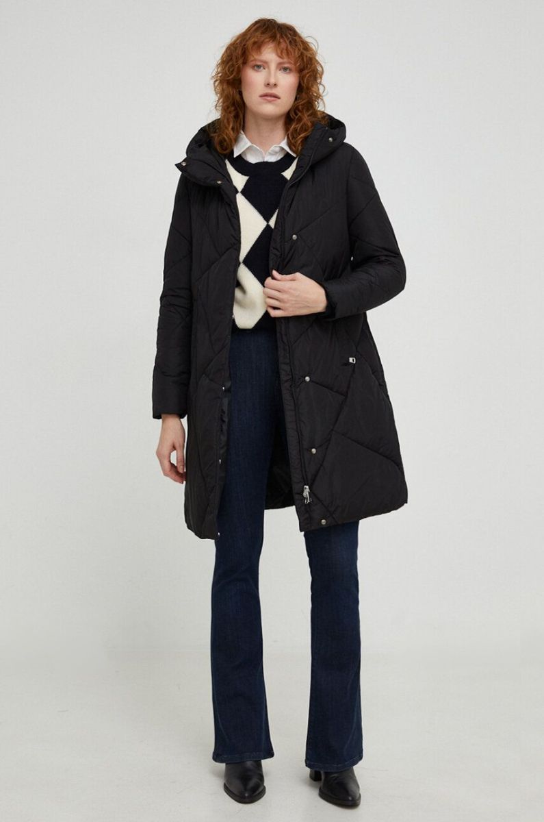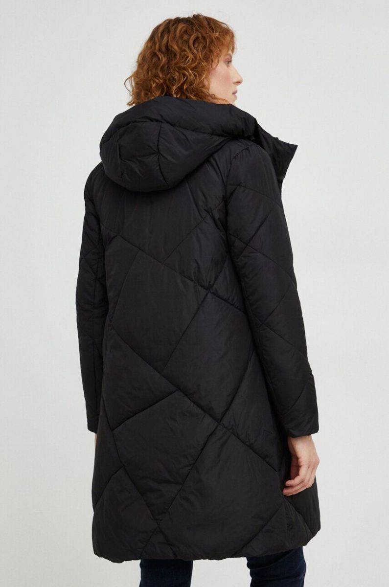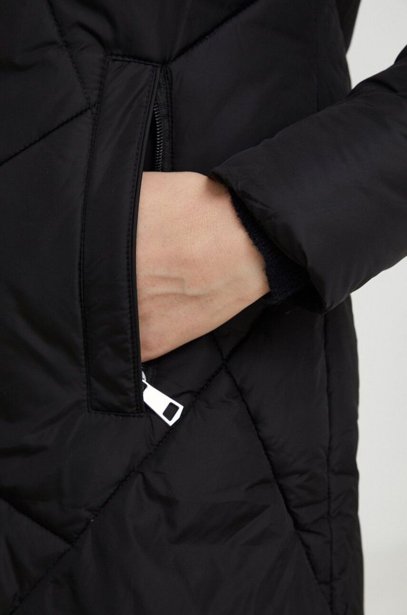- Завищений комір і незнімний капюшон забезпечують додатковий захист від холоду.