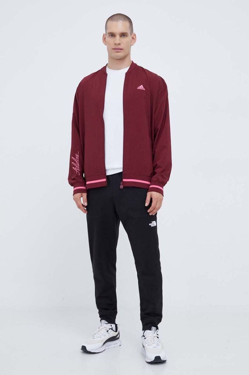 Куртка-бомбер adidas чоловічий колір бордовий перехідна