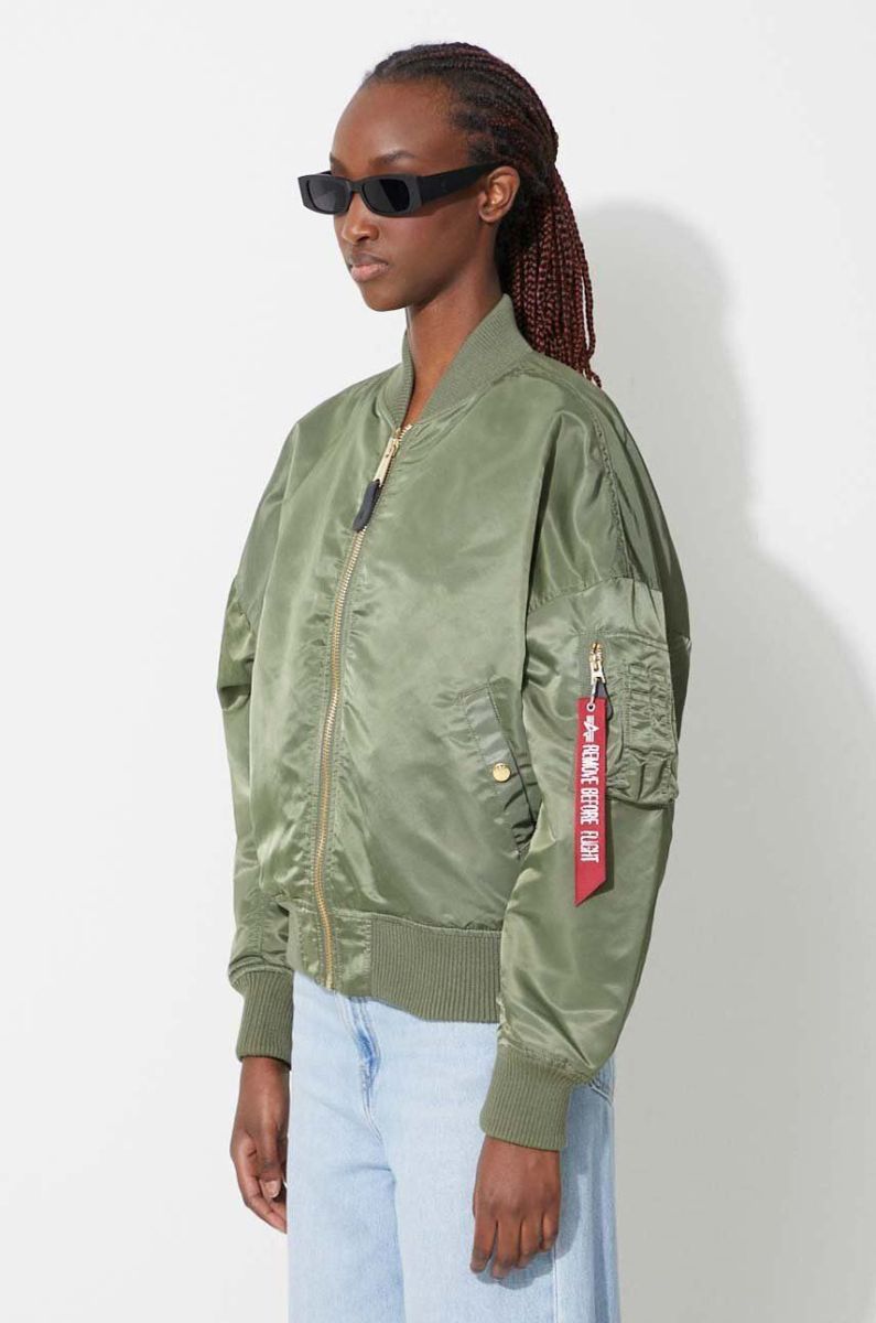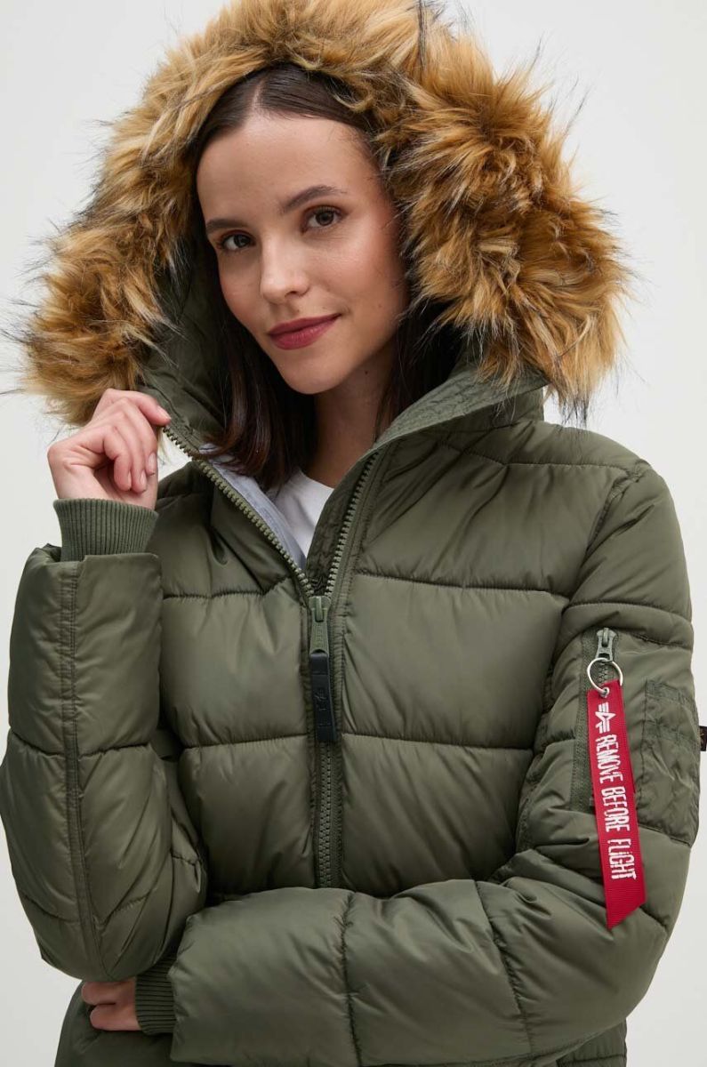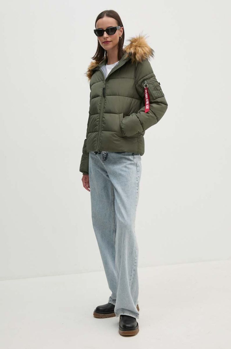 Куртка-бомбер Alpha Industries Hooded Puffer Wmn жіноча колір зелений перехідна oversize