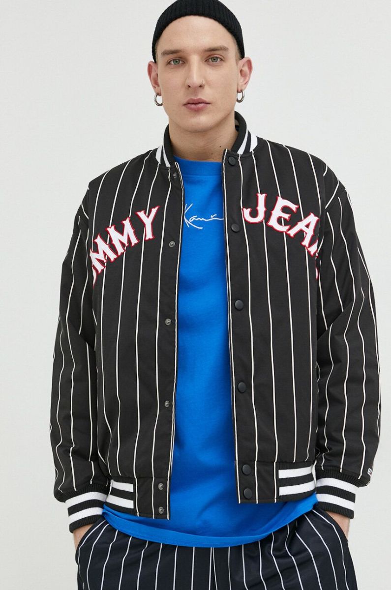 Куртка-бомбер Tommy Jeans чоловічий колір чорний перехідна oversize