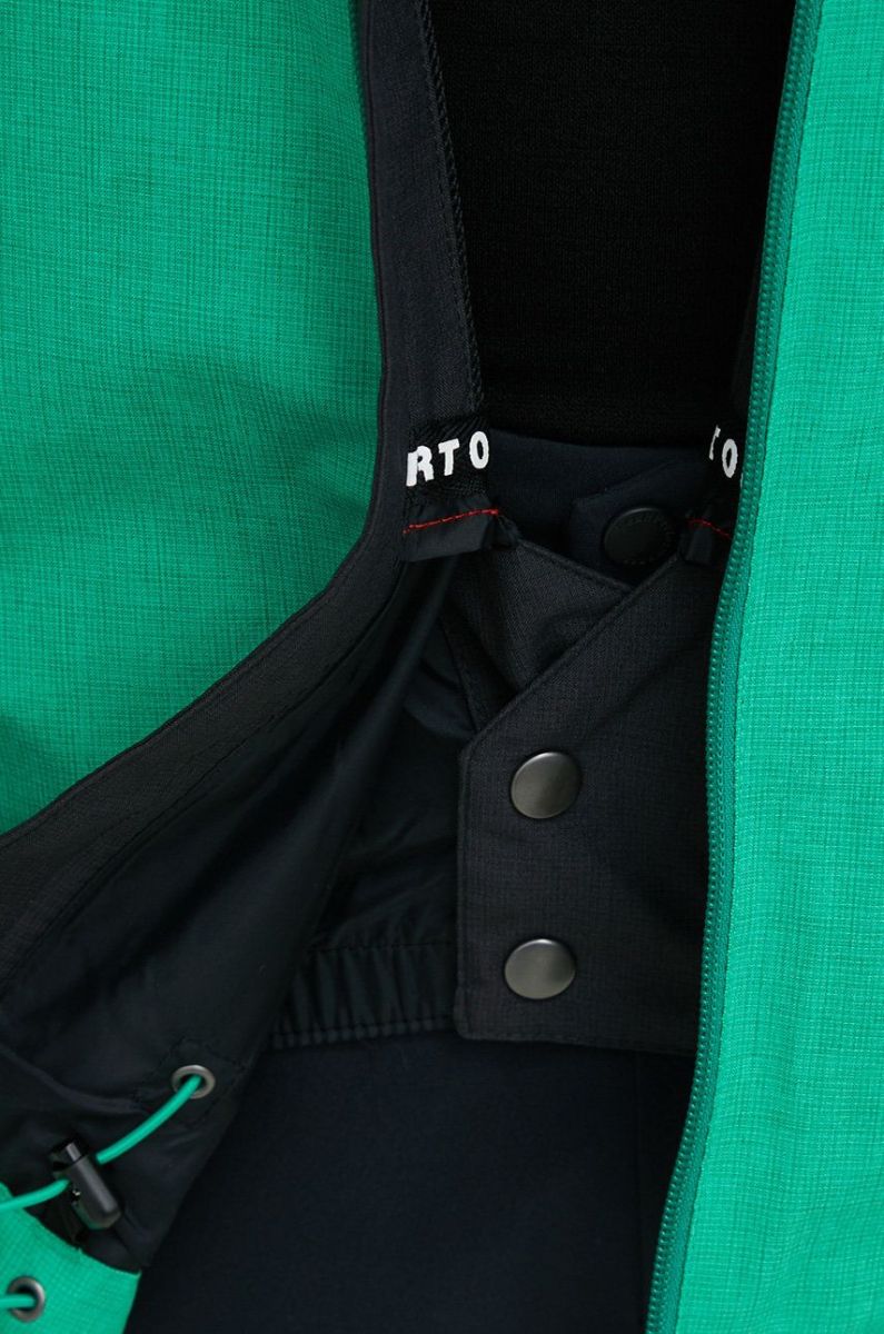 - Усередині вбудований сніговий ремінь, який забезпечує додатковий захист від холоду, а також запобігає потраплянню снігу під куртку, також під час падіння.