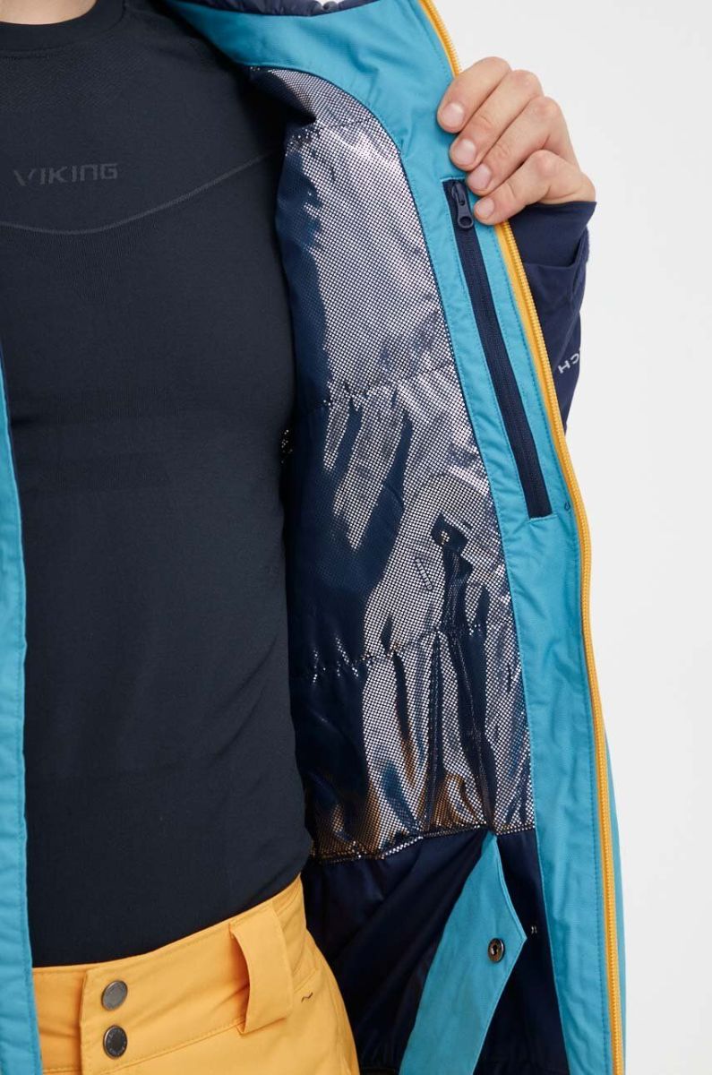 - Усередині вбудований сніговий ремінь, який забезпечує додатковий захист від холоду, а також запобігає потраплянню снігу під куртку, також під час падіння.