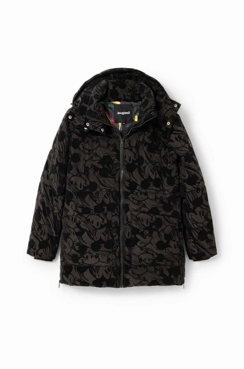 - Завищений комір і незнімний капюшон забезпечують додатковий захист від холоду.