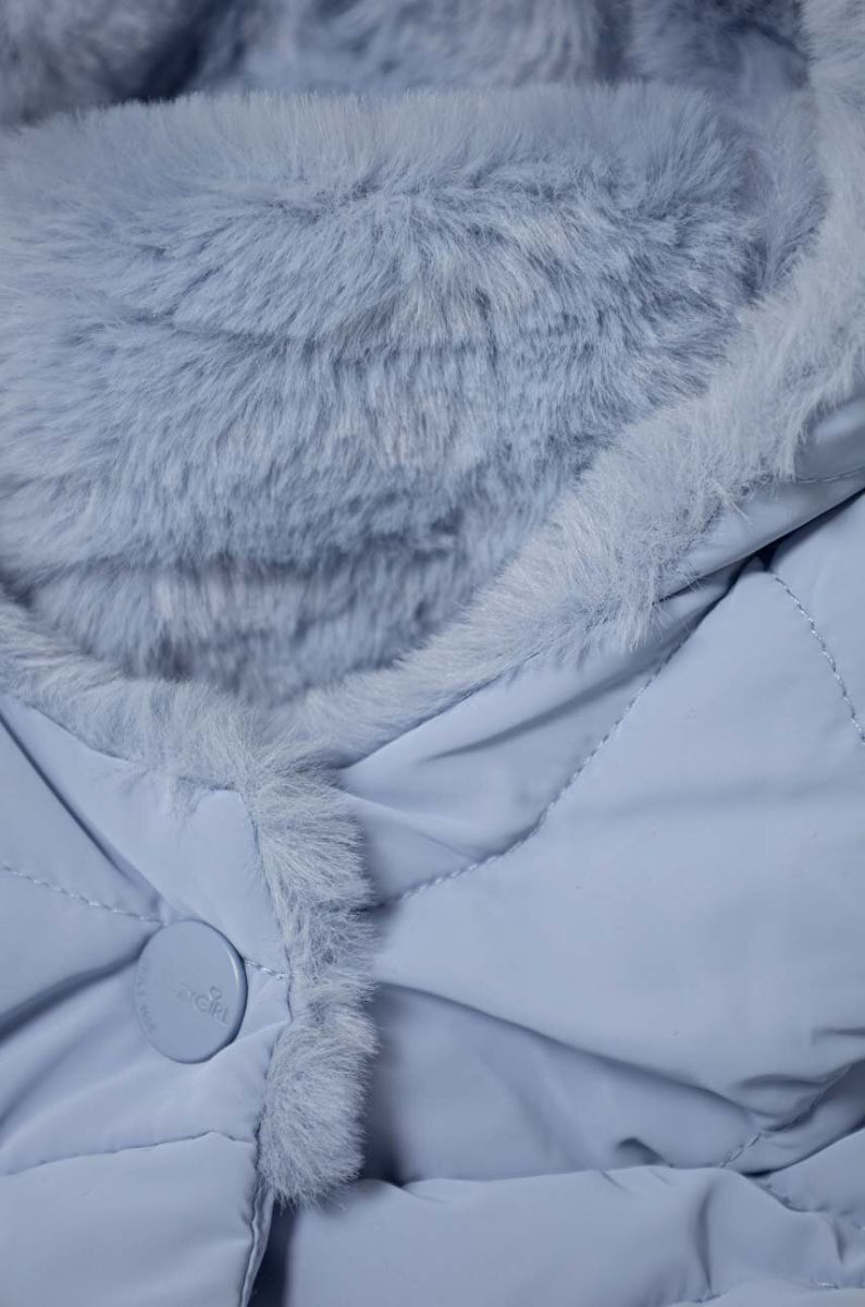 - Завищений комір і незнімний капюшон забезпечують додатковий захист від холоду.