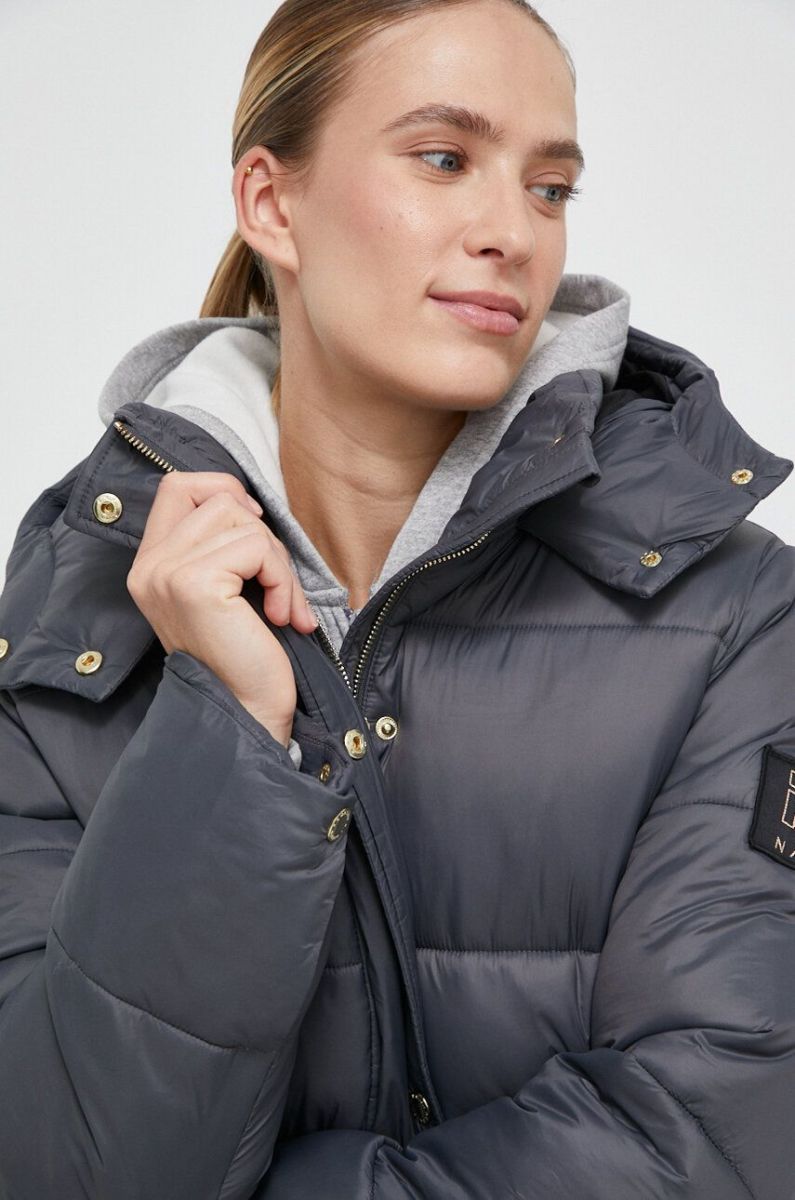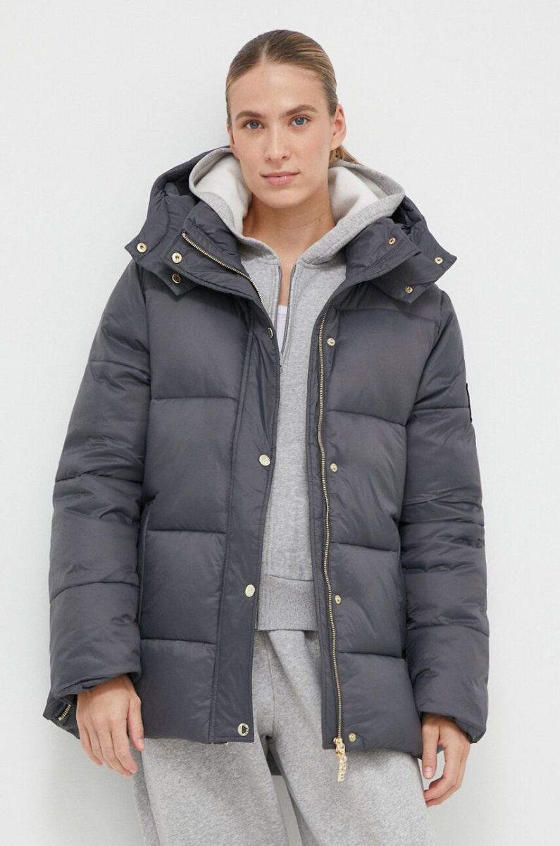 - Завищений комір і незнімний капюшон забезпечують додатковий захист від холоду.