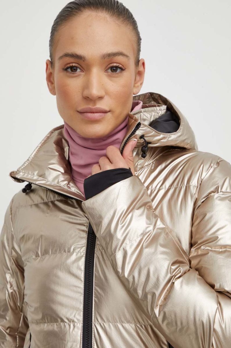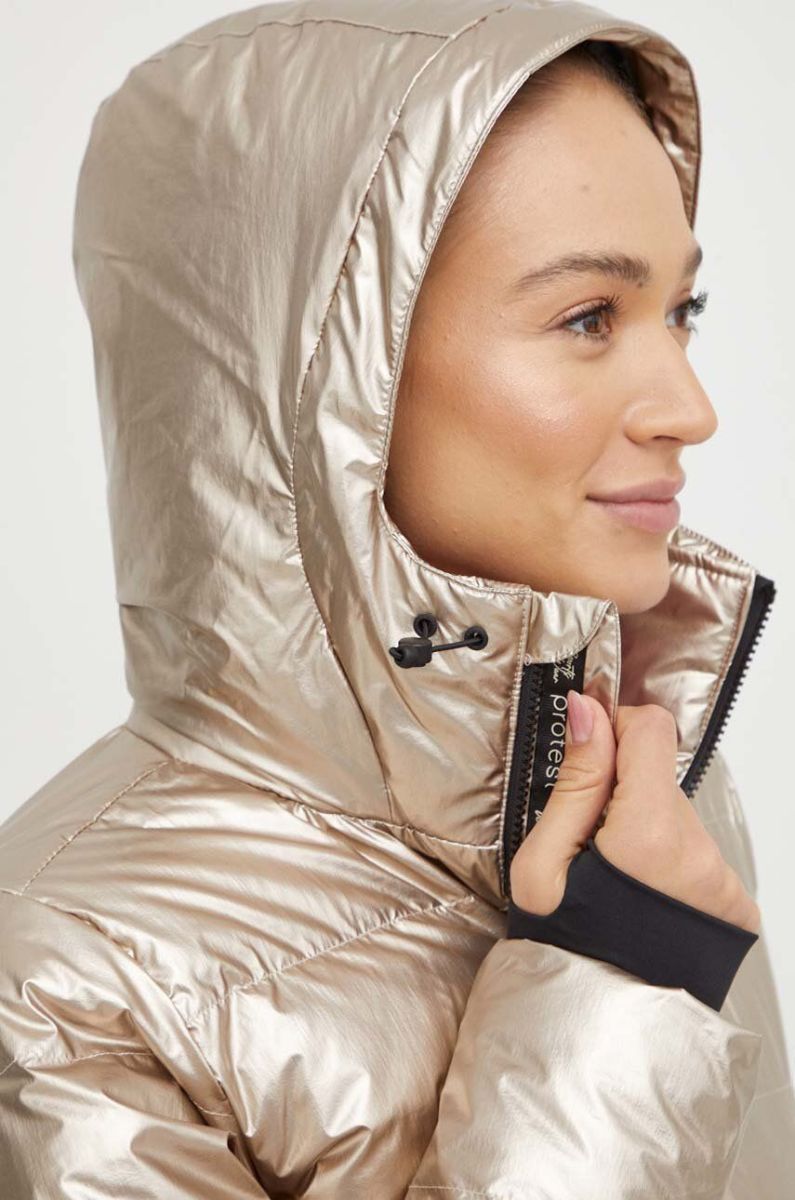 - Щільно підтягнутий високий комір із підборіддям і вбудованим капюшоном захищають від холоду, вітру, снігу та дощу.