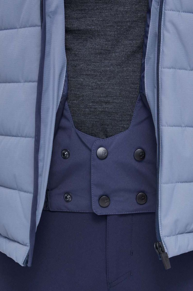 - Усередині вбудований сніговий ремінь, який забезпечує додатковий захист від холоду, а також запобігає потраплянню снігу під куртку, також під час падіння.