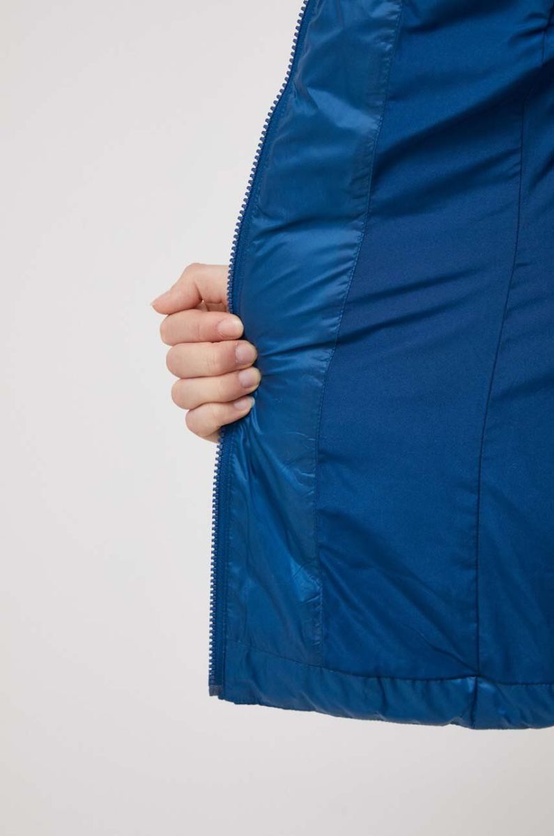 - Завищений комір і незнімний капюшон забезпечують додатковий захист від холоду.