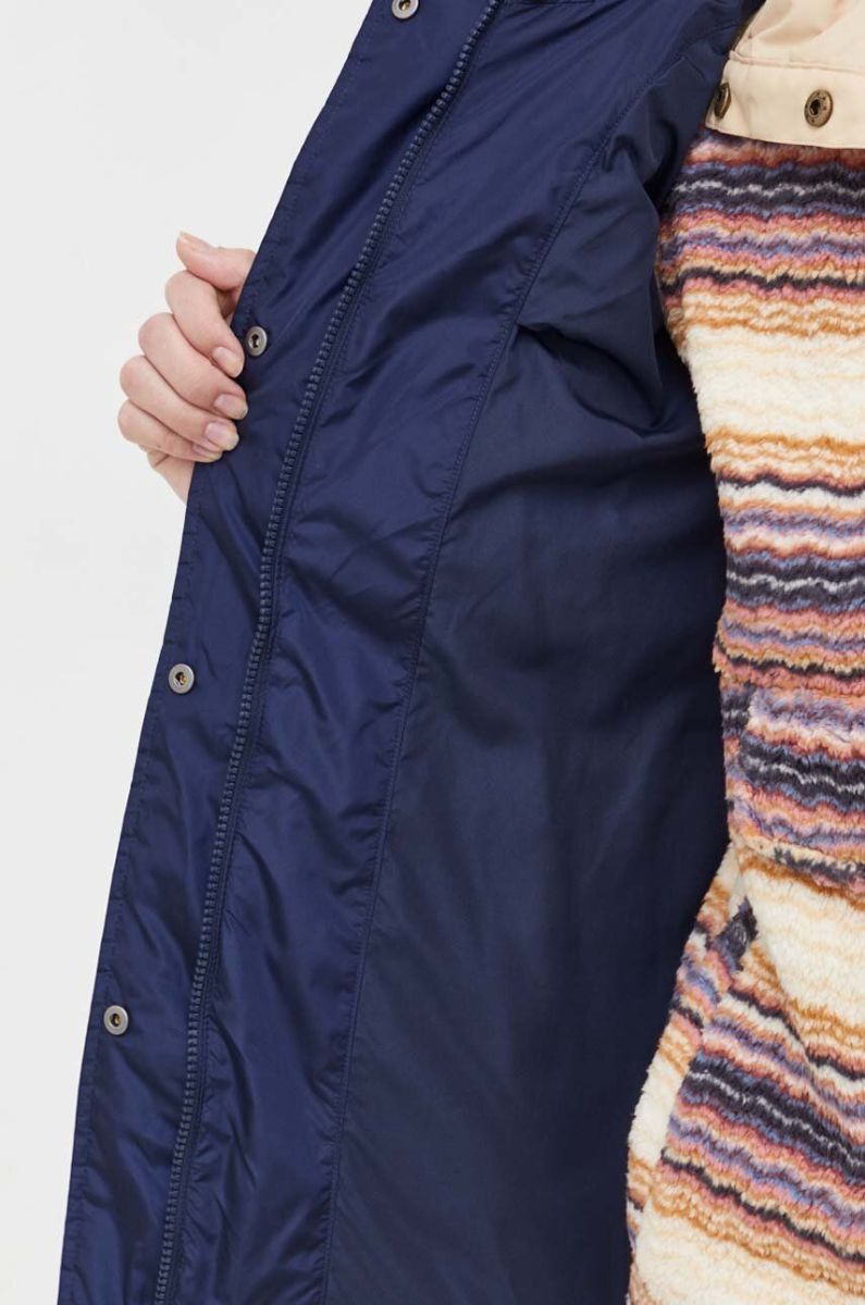 - Завищений комір і незнімний капюшон забезпечують додатковий захист від холоду.