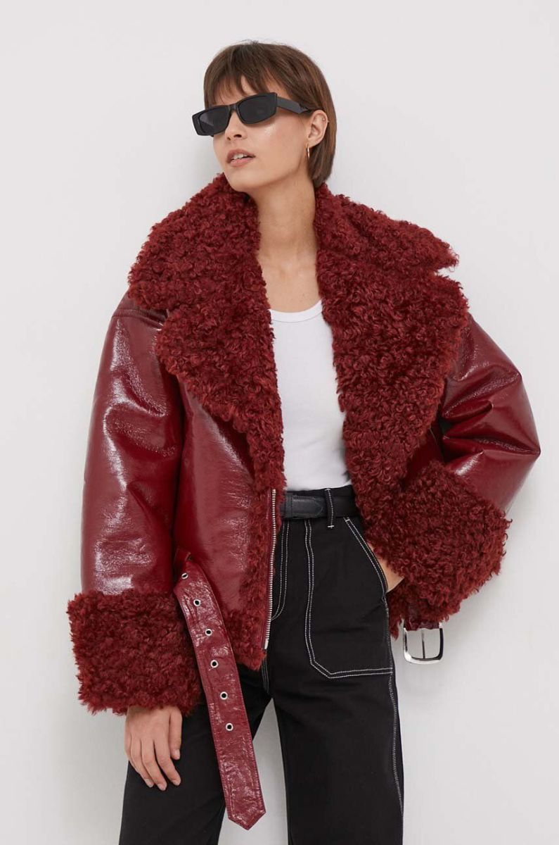 Куртка United Colors of Benetton жіноча колір бордовий перехідна oversize