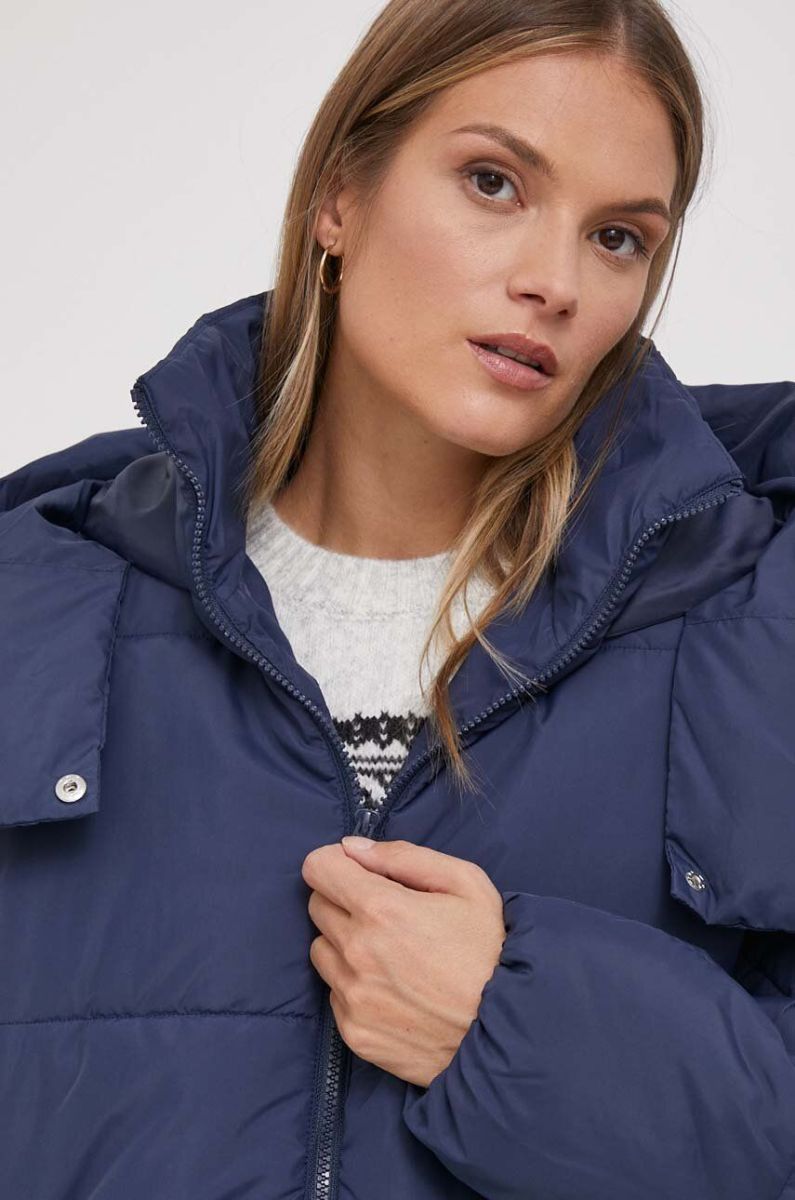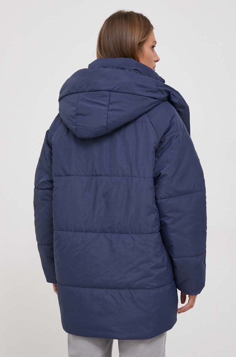 - Завищений комір і незнімний капюшон забезпечують додатковий захист від холоду.