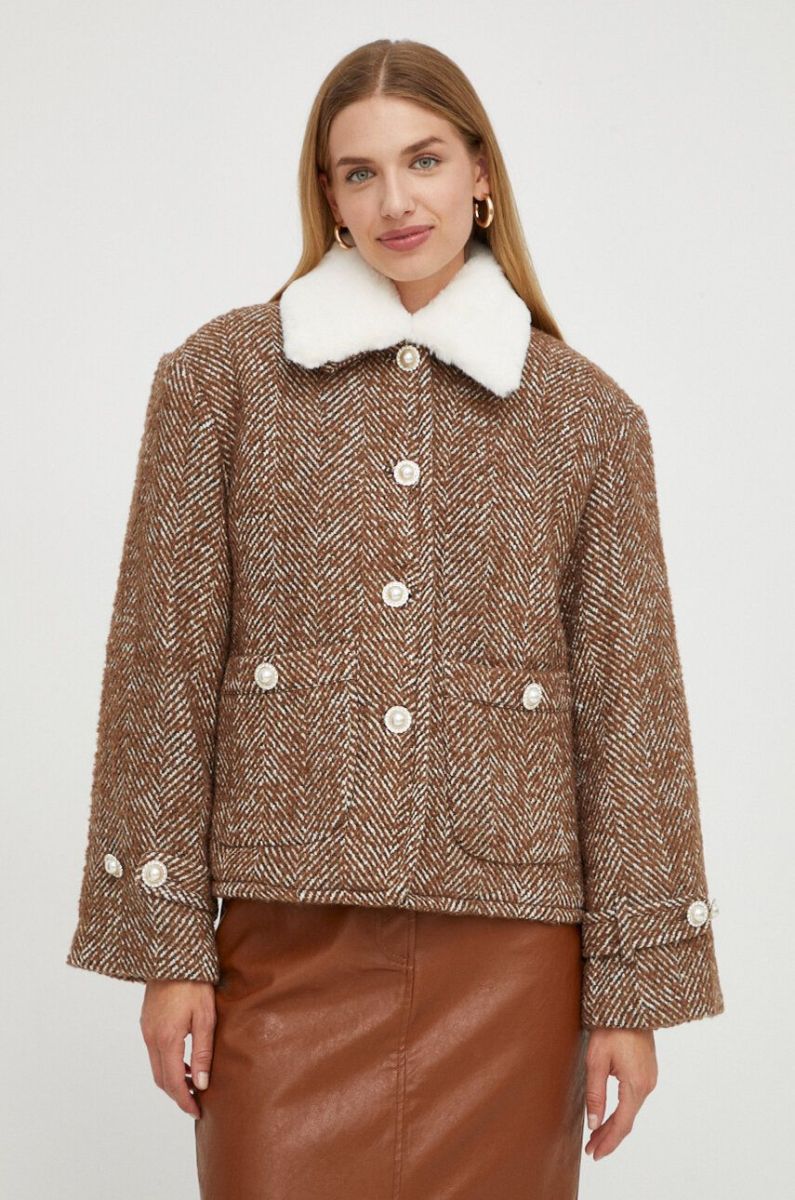 Куртка з домішкою вовни Custommade колір коричневий перехідна