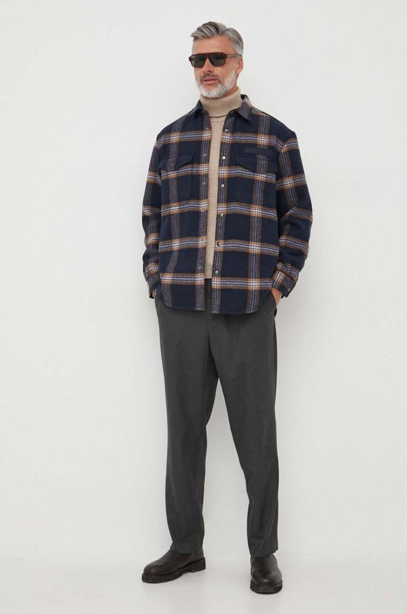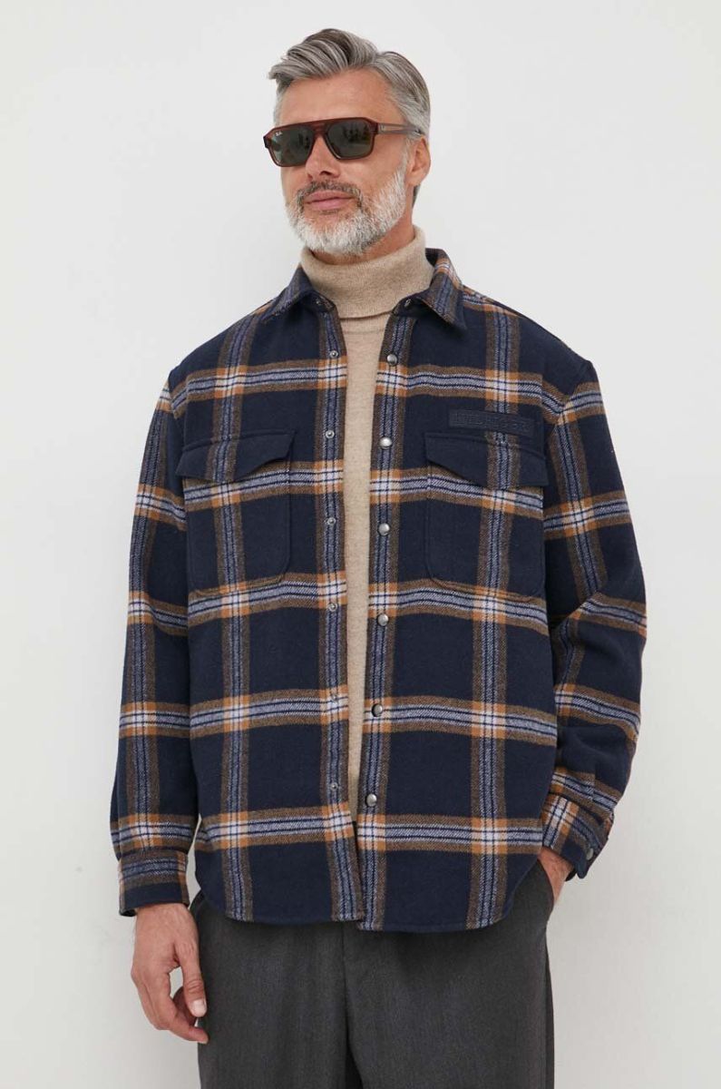 Куртка з домішкою вовни Tommy Hilfiger колір синій перехідна oversize