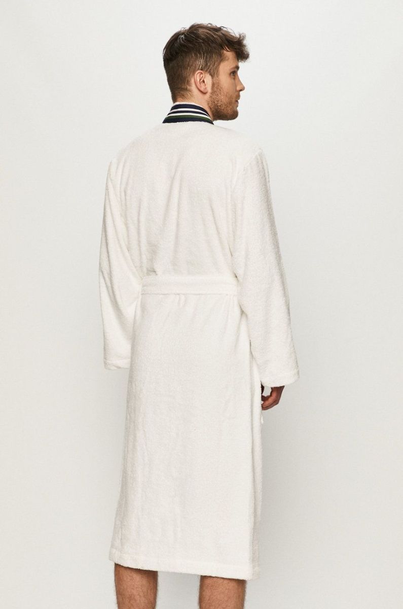 Халат із колекції Lacoste. Модель виготовлена із гладкої бавовни.