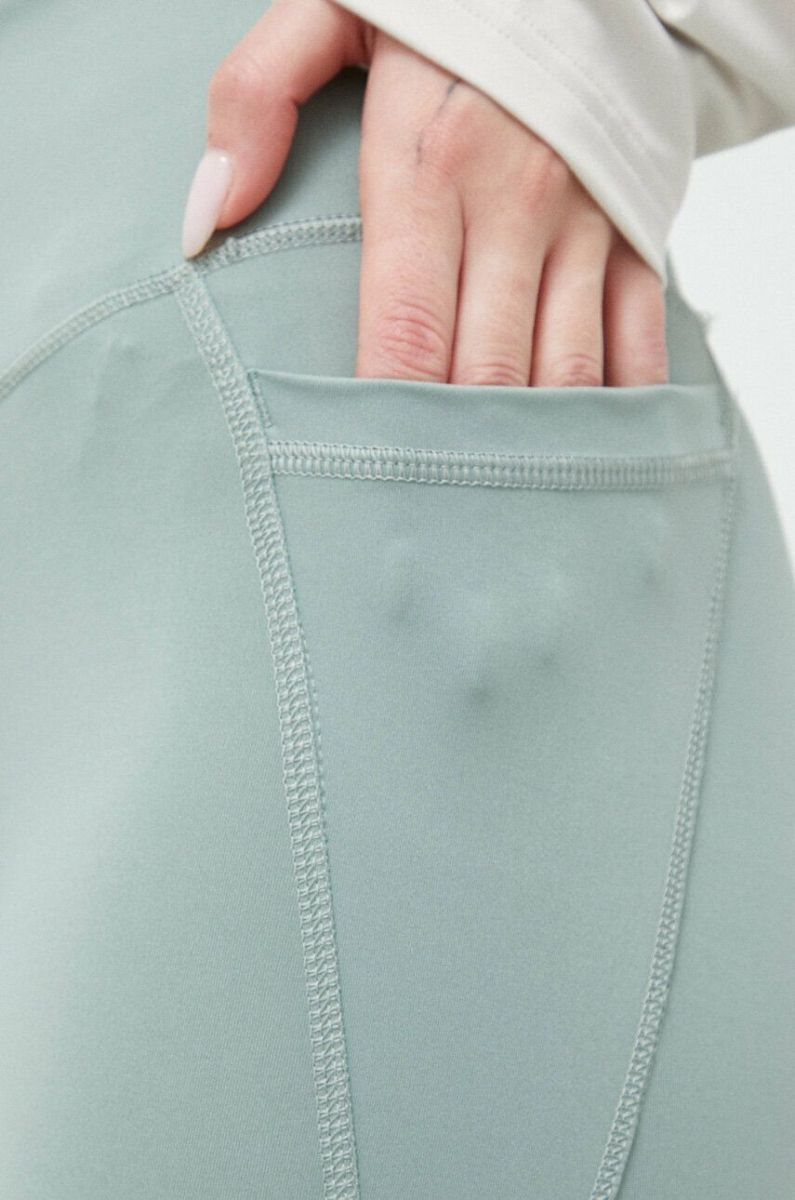 - Верхній край оброблений широким поясом, який формує фігуру та забезпечує додаткову підтримку під час занять.
