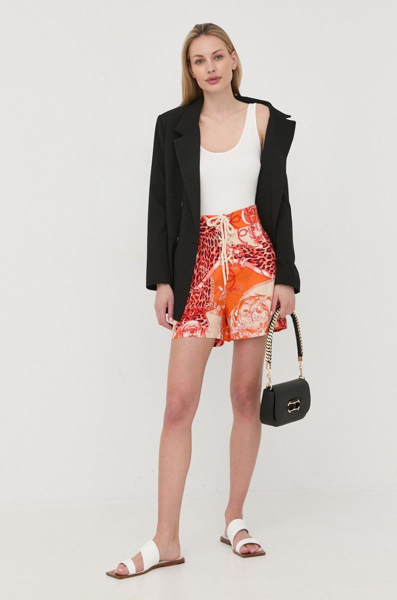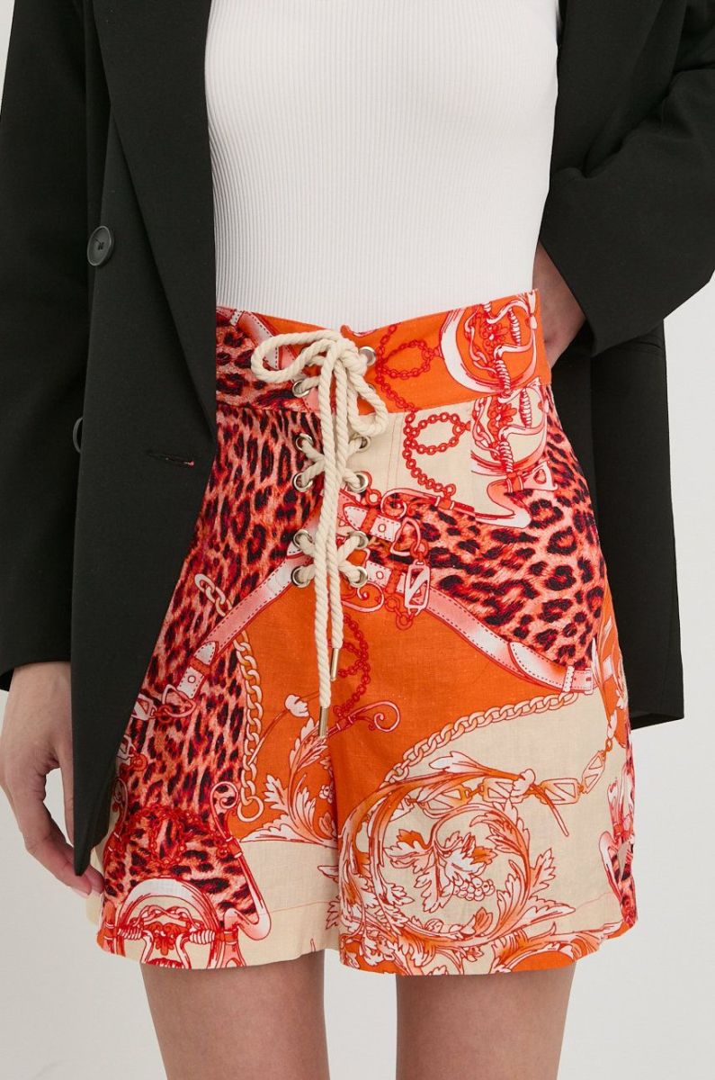 Лляні шорти Guess жіночі колір помаранчевий візерунок висока посадка