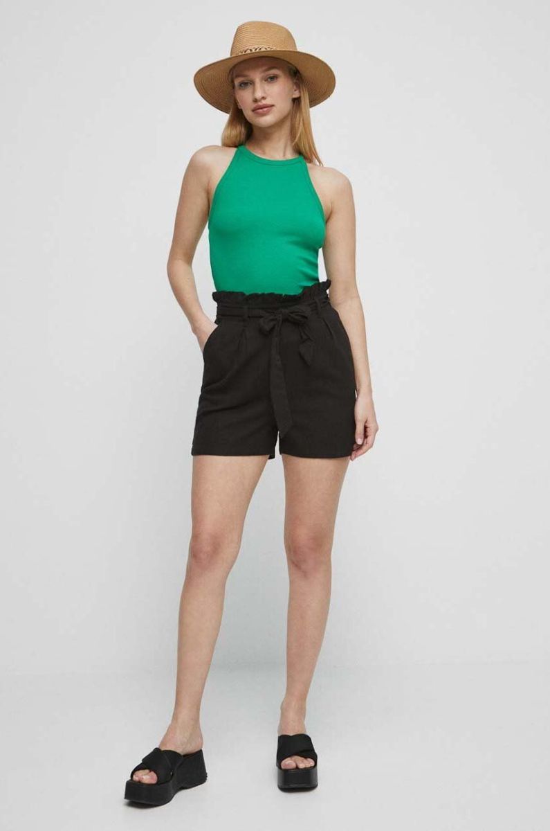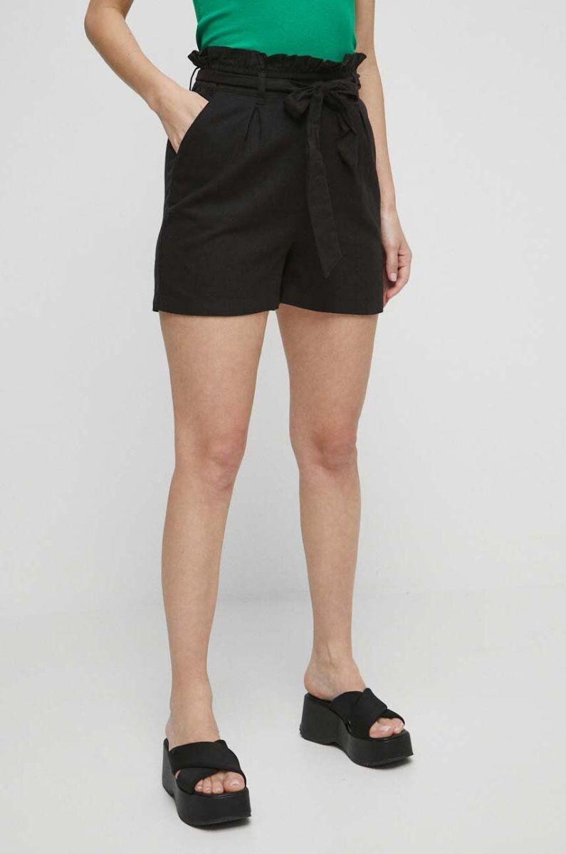 Лляні шорти Medicine жіночі колір чорний візерунок висока посадка