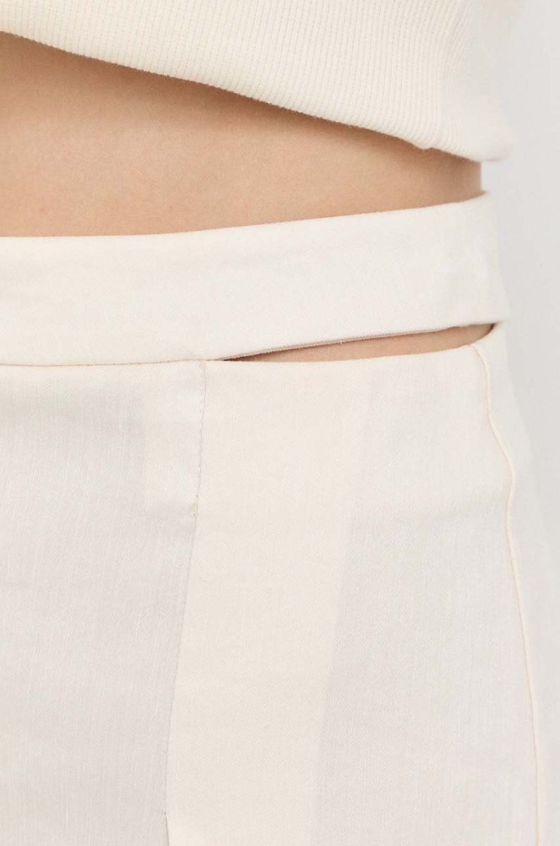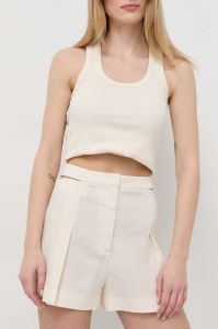 Лляні шорти Patrizia Pepe колір бежевий однотонні висока посадка