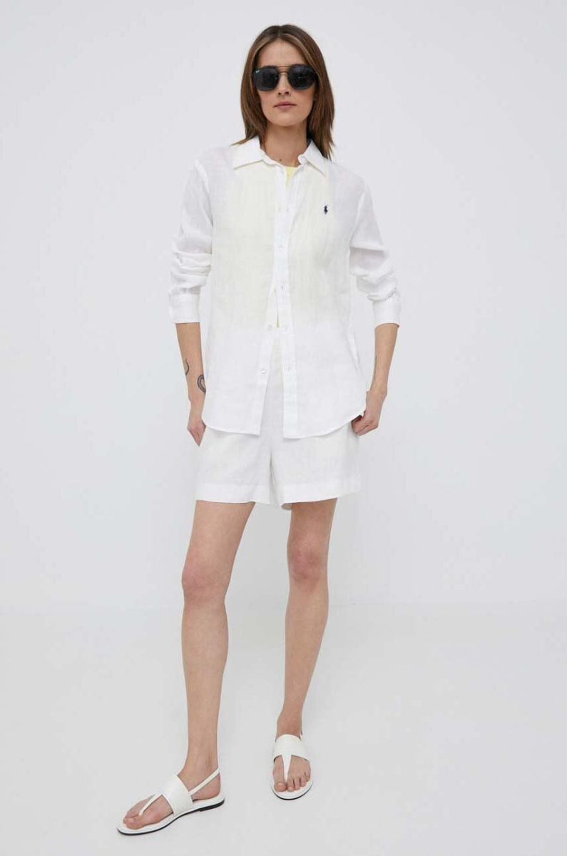 Лляні шорти Polo Ralph Lauren колір білий однотонні висока посадка