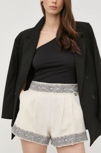 Лляні шорти Twinset жіночі колір бежевий з аплікацією висока посадка