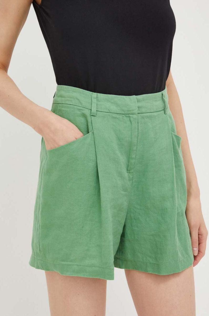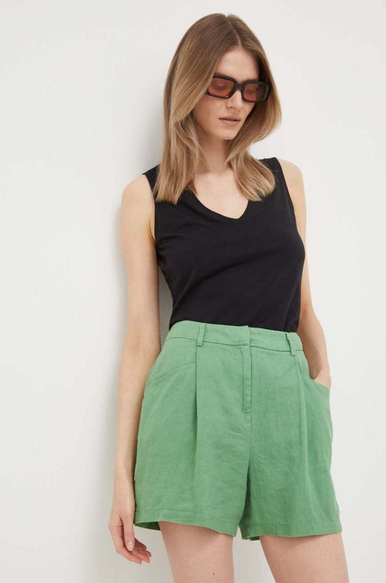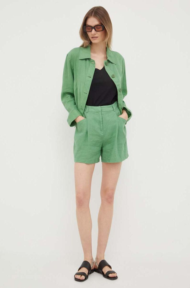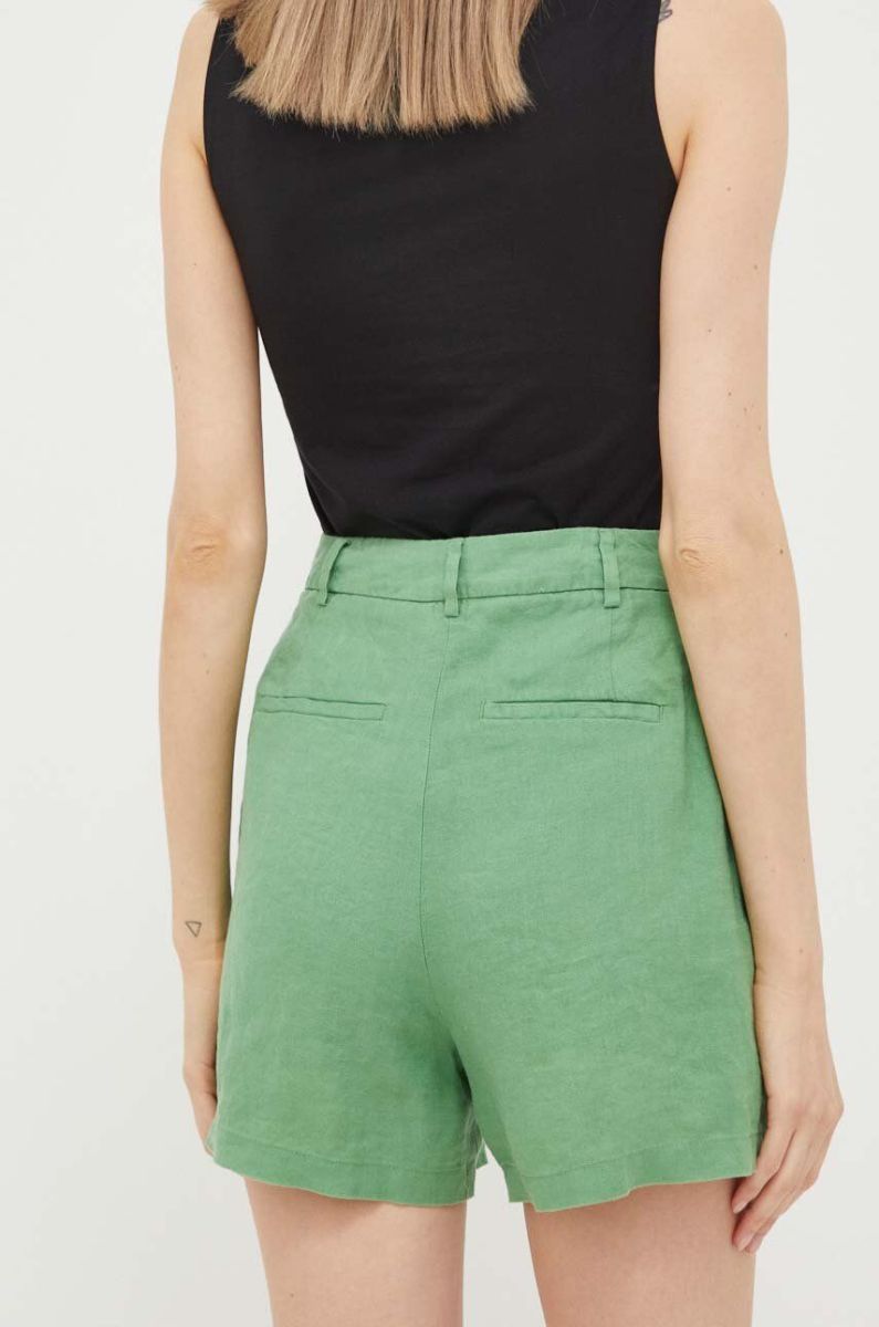 Лляні шорти United Colors of Benetton колір зелений однотонні висока посадка